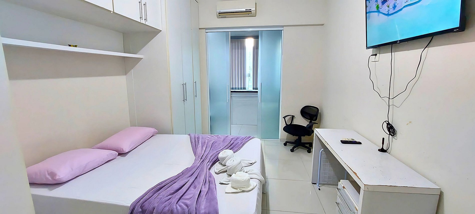 Além disso, o edifício dispõe de elevadores para maior comodidade, uma portaria ativa 24 horas por dia para garantir sua segurança, e conveniente estacionamento ao lado do prédio, disponível por apenas R$ 30,00 por estadia (pago no momento do check-in em PIX ou no dinheiro - não aceitam cartão).