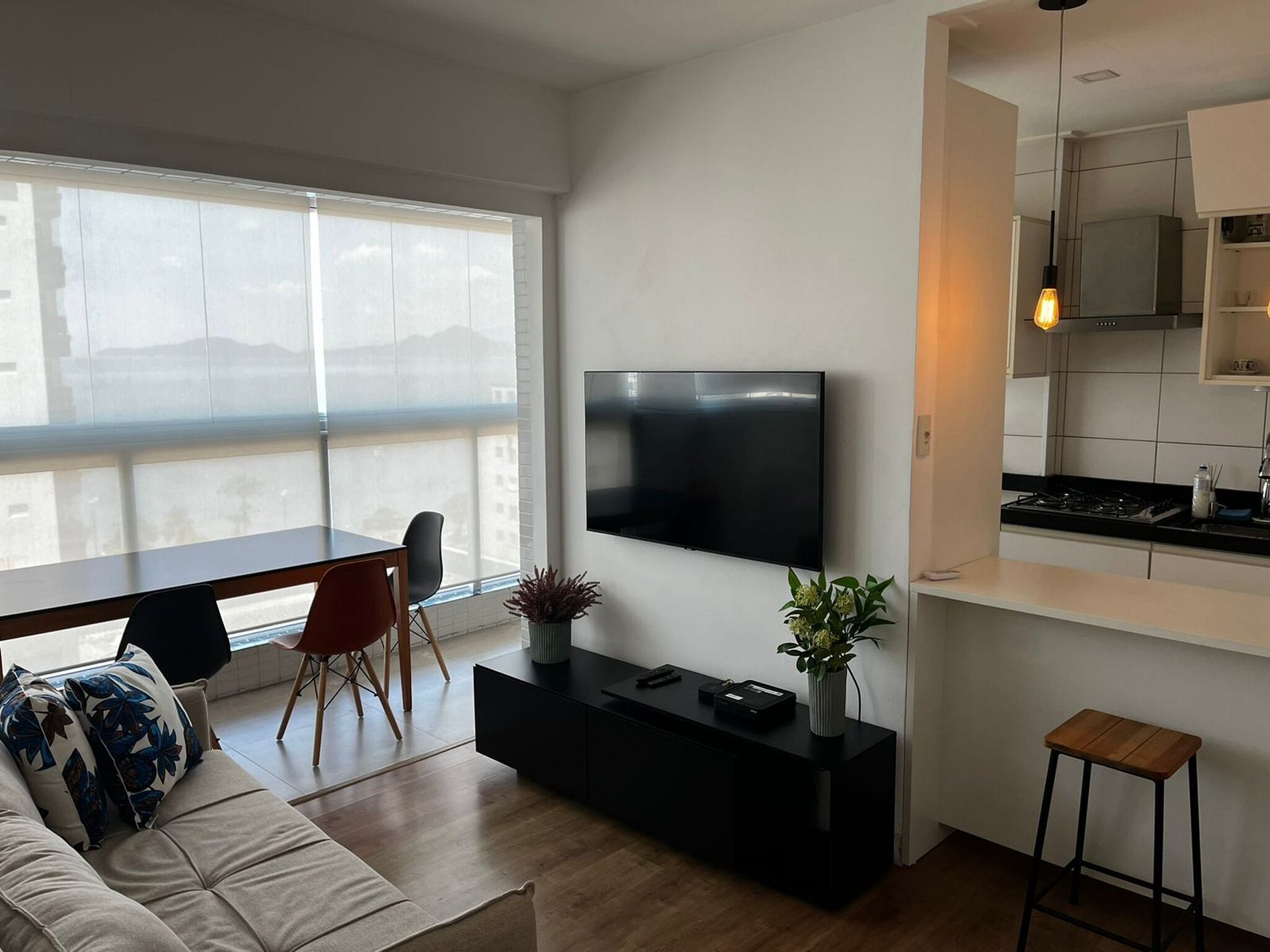 Conheça o apê 133, localizado no 13º andar no condomínio Latitude 43, Ponta da Praia em Santos! Desfrute de uma panorâmica de tirar o fôlego do canal, por onde majestosos navios navegam em direção ao porto de Santos. Este aconchegante apartamento oferece uma cama queen e um sofá cama acomodando confortavelmente até 4 pessoas.