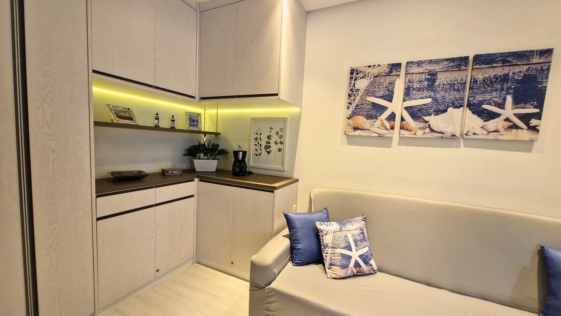 • Acomoda até 3 pessoas, com 2 quartos, sendo 1 suíte com cama de casal e colchão EMMA, além de sofá-cama.