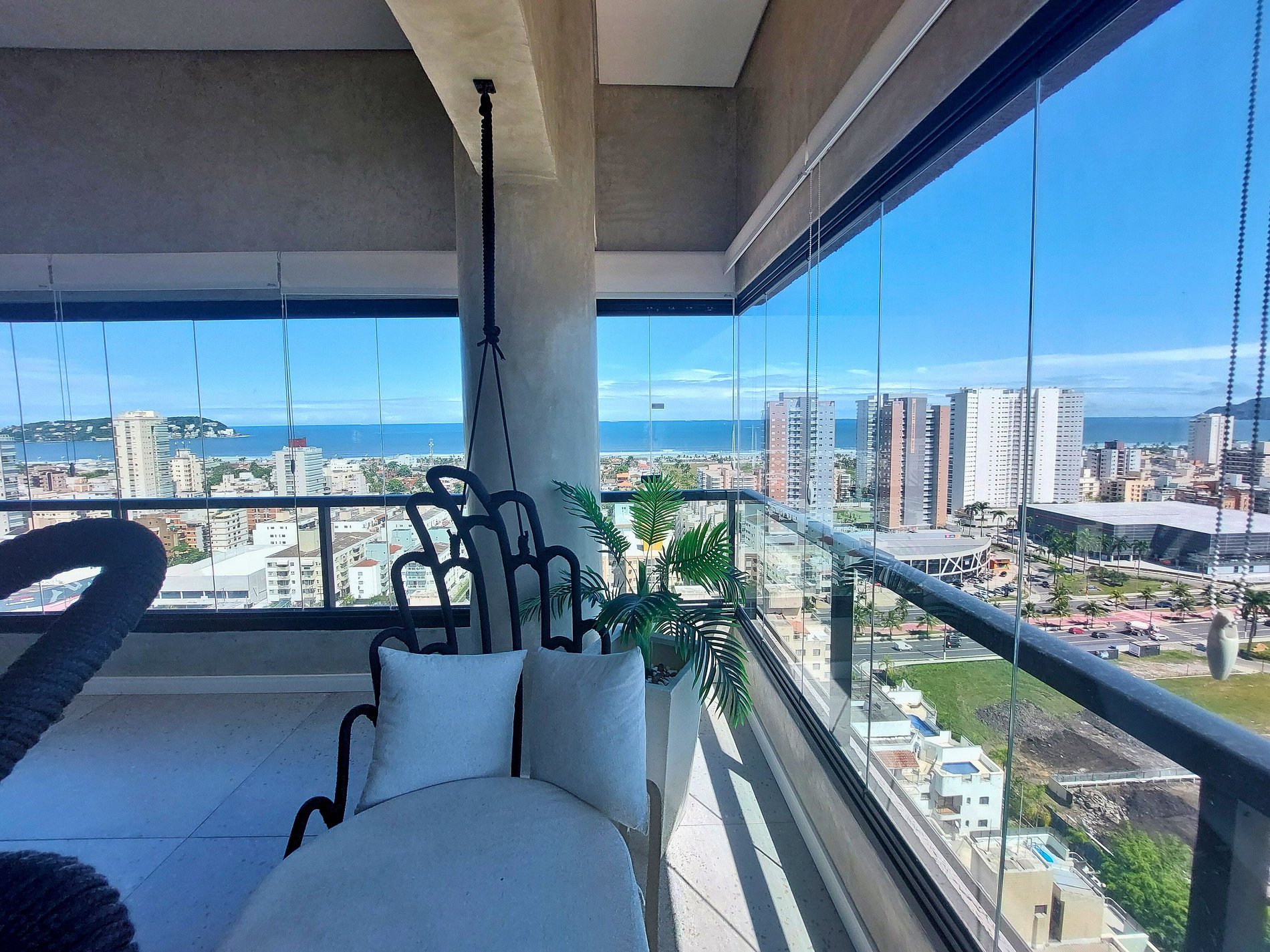 Localizado no condomínio Type Enseada, um dos mais novos lançamentos da cidade, com piscina na cobertura que proporciona uma vista maravilhosa para o mar, super moderno, confortável e seguro, o condomínio e o apartamento oferece tudo o que você precisa para uma estadia inesquecível.