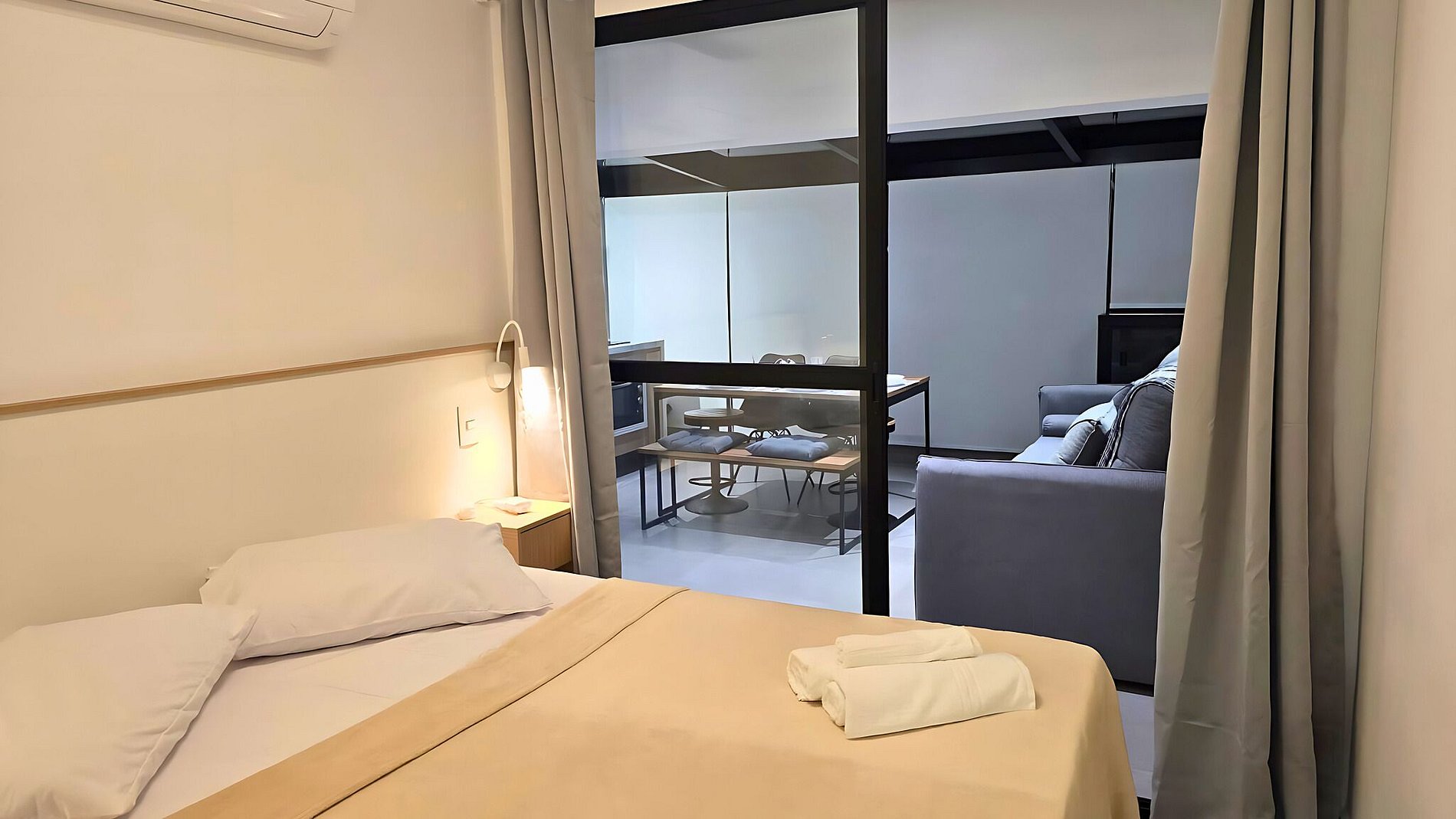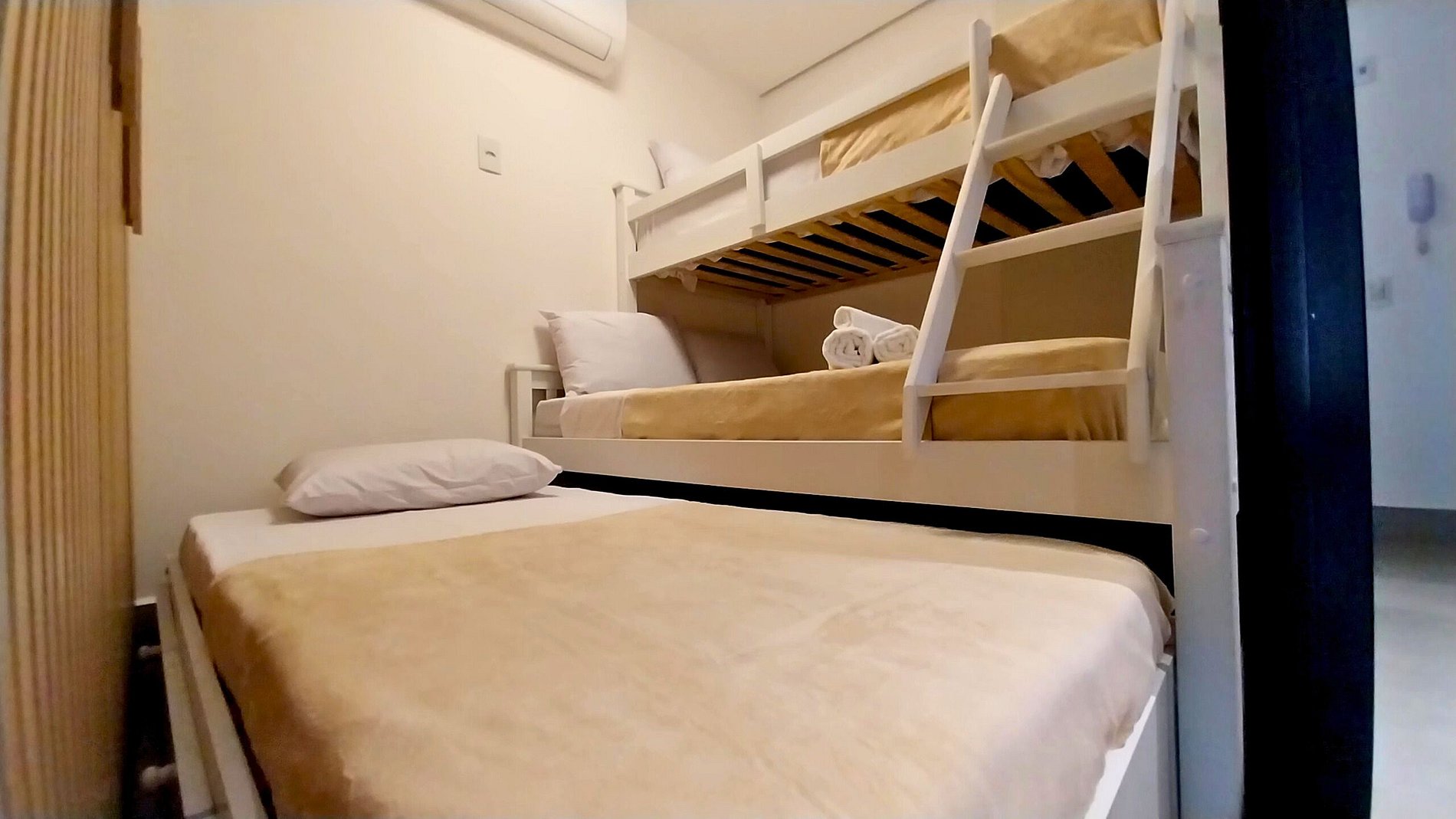Bem-vindo ao nosso incrível e espaçoso apartamento 2 dormitórios, uma experiência única e exclusiva para você, família e amigos. Tudo aqui foi pensado para você ter uma experiência incomparável que combina decoração refinada moderna e funcional. Nosso espaço comporta até 6 pessoas, confortavelmente instaladas em 2 quartos com ar condicionado independentes, sendo um deles suíte com cama casal baú, closed com diversos armários para roupas e banheiro privativo. No outro quarto temos uma personalizada Triliche, super funcional para 4 pessoas com uma cama de casal e duas de solteiro, com travesseiros primeiros linha, lençóis em percal 200 fios e toalhas em 100% algodão, tornando suas noites de sono tranquilas. Banheiro super decorado e espaçoso com diversos espelhos, armários e super ducha relaxante, finaliza sua estadia com perfeição.