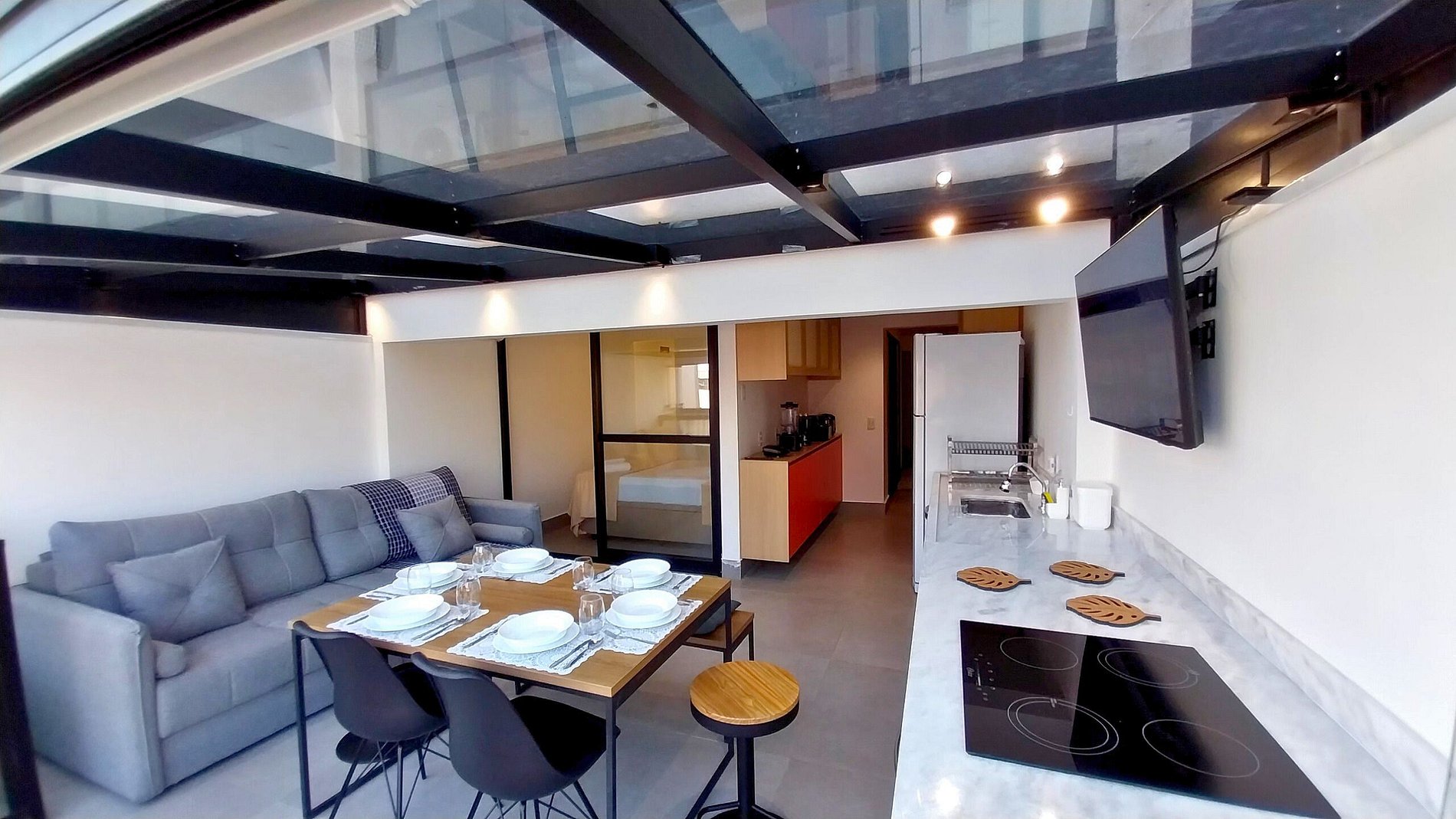 O apartamento possui sistema inteligente de gerenciamento energia, onde ao sair do apartamento ela desligará automaticamente, exceto geladeira e internet. Em caso de hospedagens com cães, não é possível manter a energia ligada caso o cão fique sozinho no apartamento