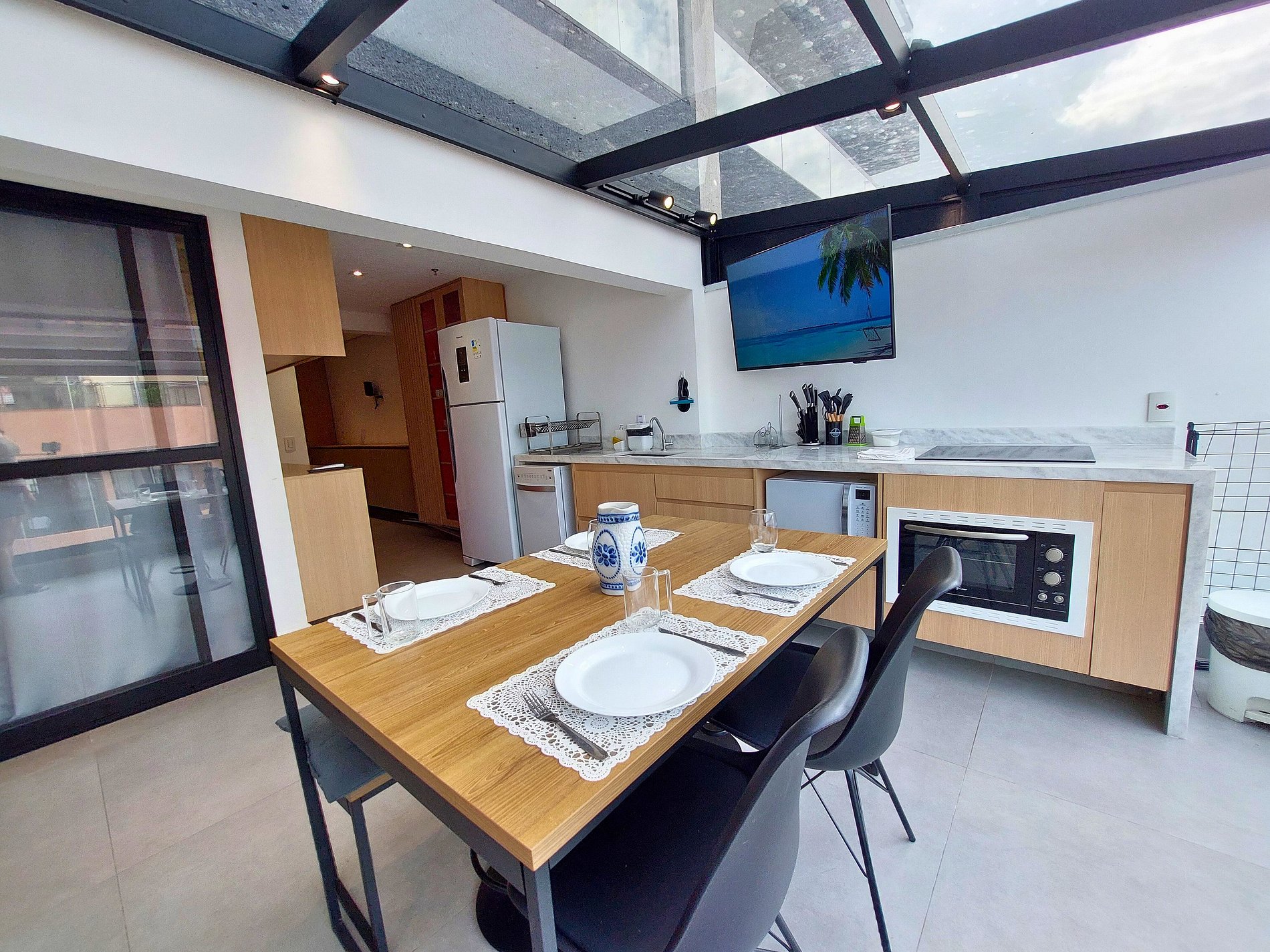 Em sua reserva estará incluso: roupa de cama, travesseiros e toalhas (exceto toalha de praia) de acordo com a quantidade de hóspedes pagantes, 1 manta para utilização durante a hospedagem e cozinha equipada.