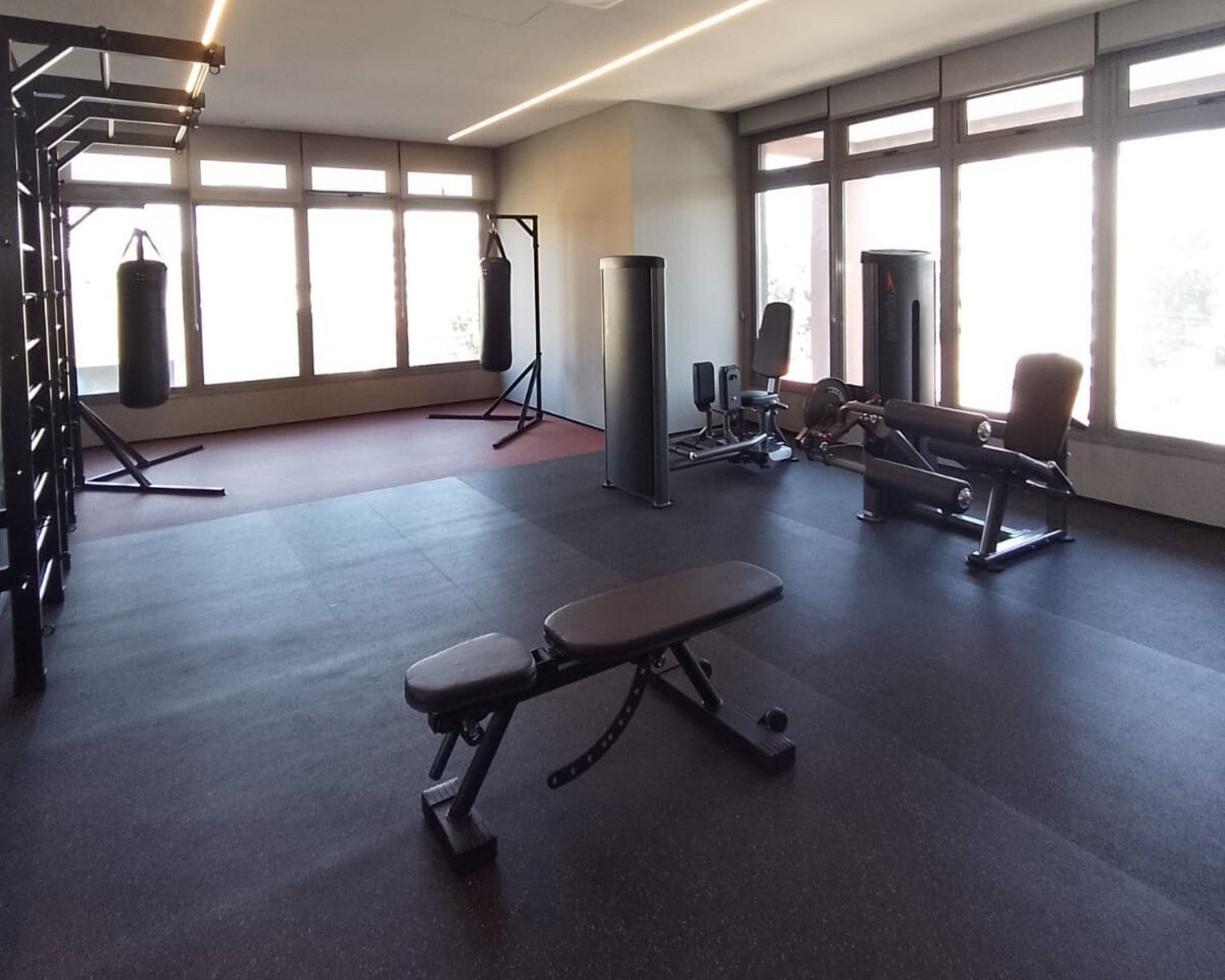 Academia Bem Equipada: Área fitness com aparelhos modernos para manter sua rotina de exercícios.