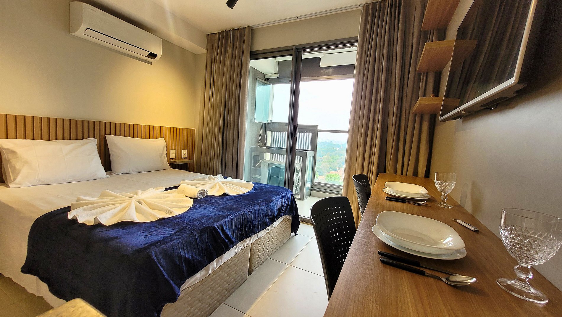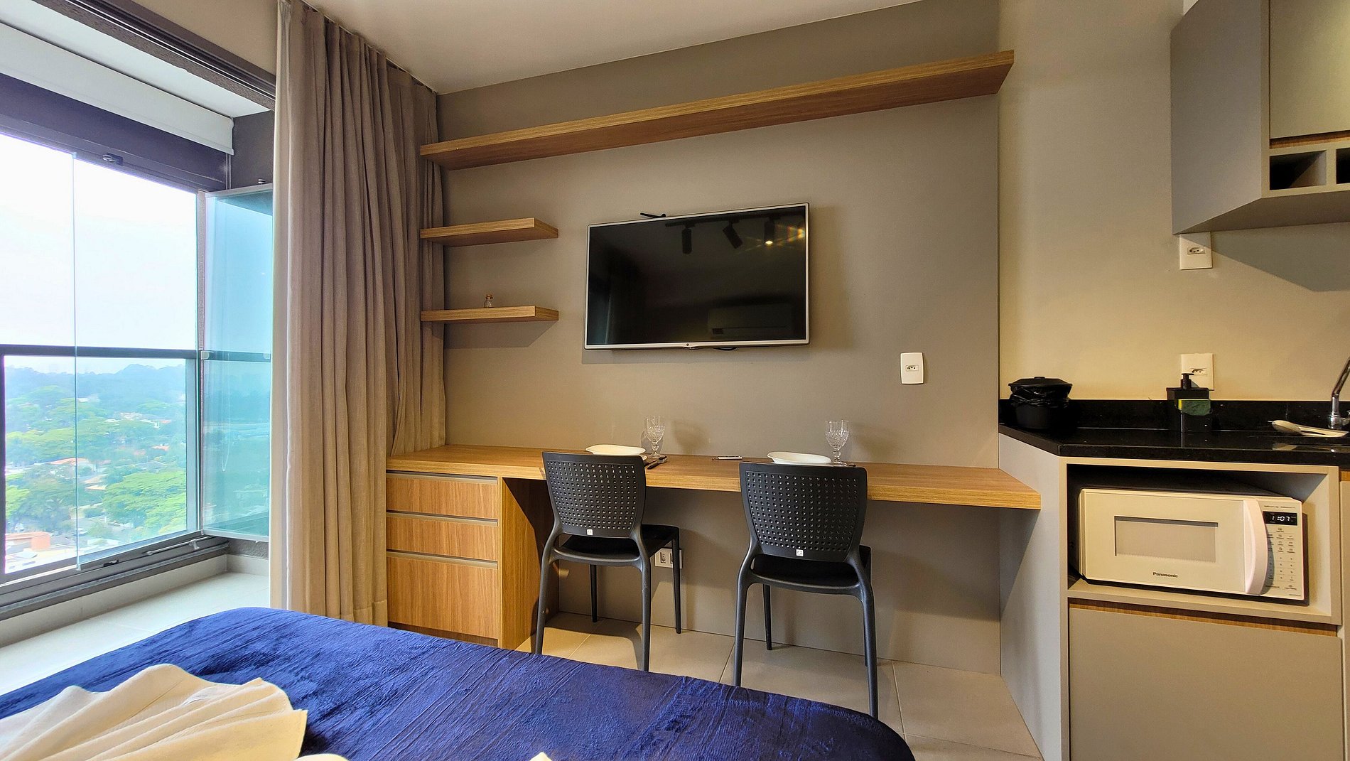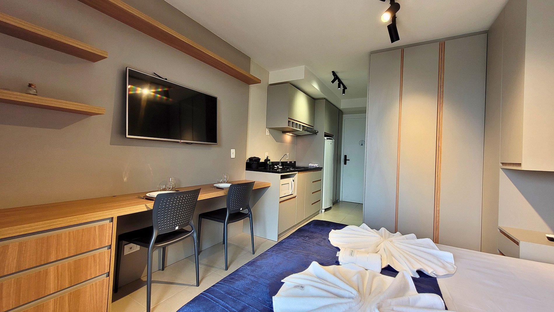 O estúdio foi cuidadosamente planejado para oferecer o máximo de conforto e praticidade, com área de estar, cozinha equipada com itens essenciais e uma cama aconchegante, onde o seu amigo de quatro patas também é bem-vindo, garantindo uma experiência ainda mais acolhedora para todos. O condomínio Lume também oferece um espaço petfriendly para que o seu cão possa se divertir!