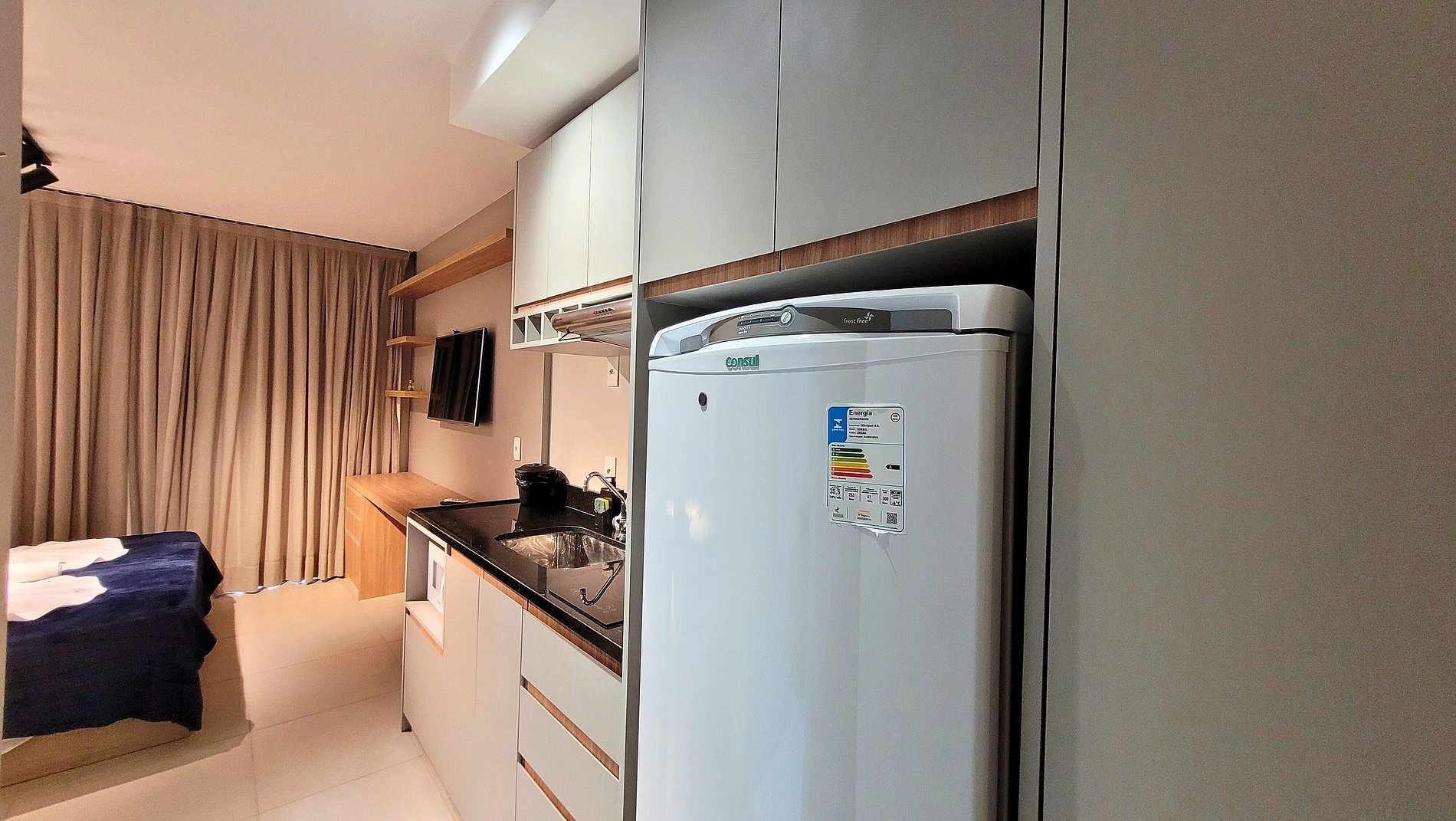 O estúdio foi cuidadosamente planejado para oferecer o máximo de conforto e praticidade, com área de estar, cozinha equipada com itens essenciais e uma cama aconchegante, onde o seu amigo de quatro patas também é bem-vindo, garantindo uma experiência ainda mais acolhedora para todos. O condomínio Lume também oferece um espaço petfriendly para que o seu cão possa se divertir!