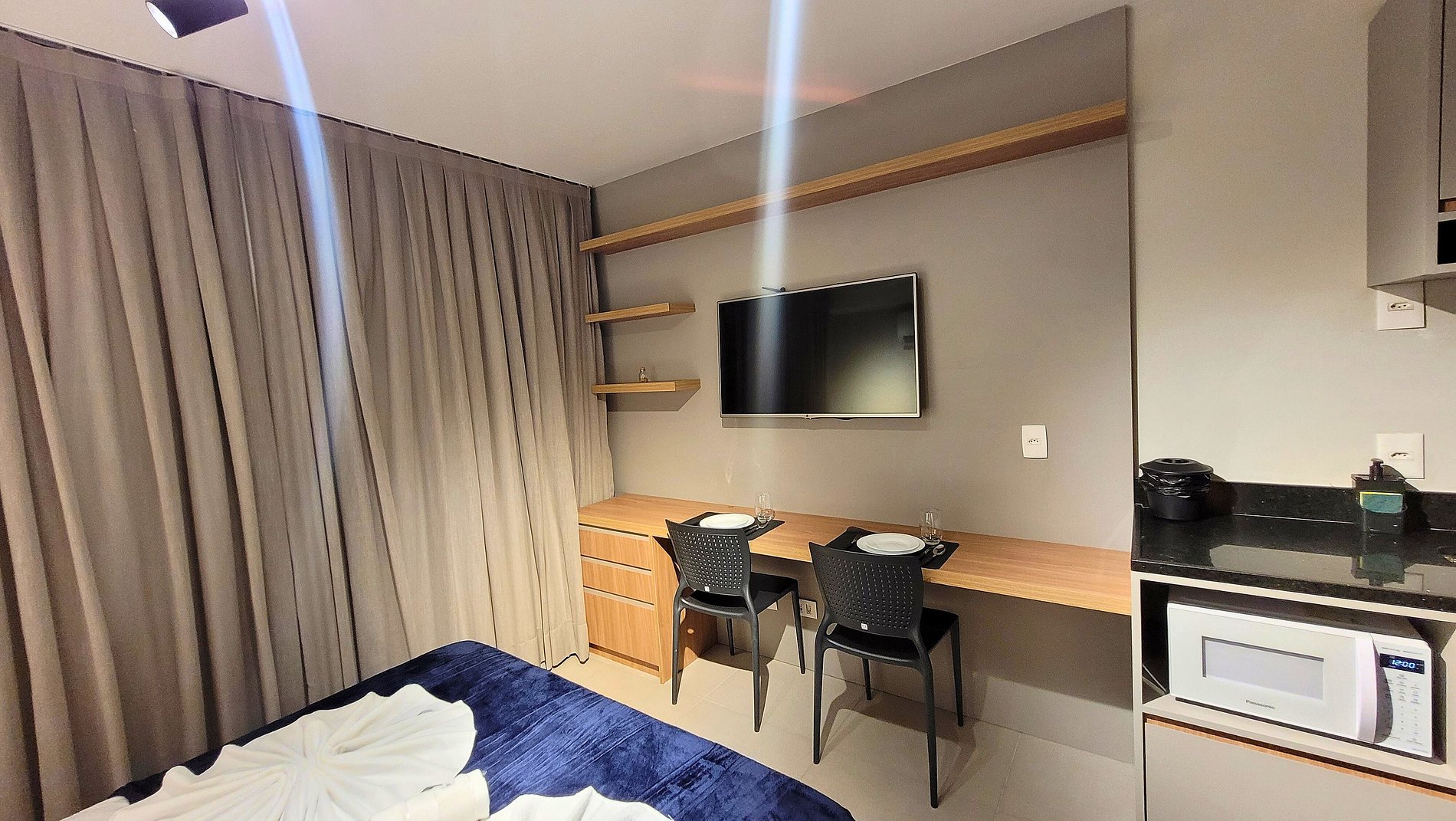 Tudo nesse lugar é de muito gosto. Ambiente moderno e muito confortável! Limpeza impecável. Amei a vista da varanda. A localização é a melhor possível. Foi muito fácil acessar o prédio por reconhecimento facial. Não tenho nada a reclamar. Só elogios!