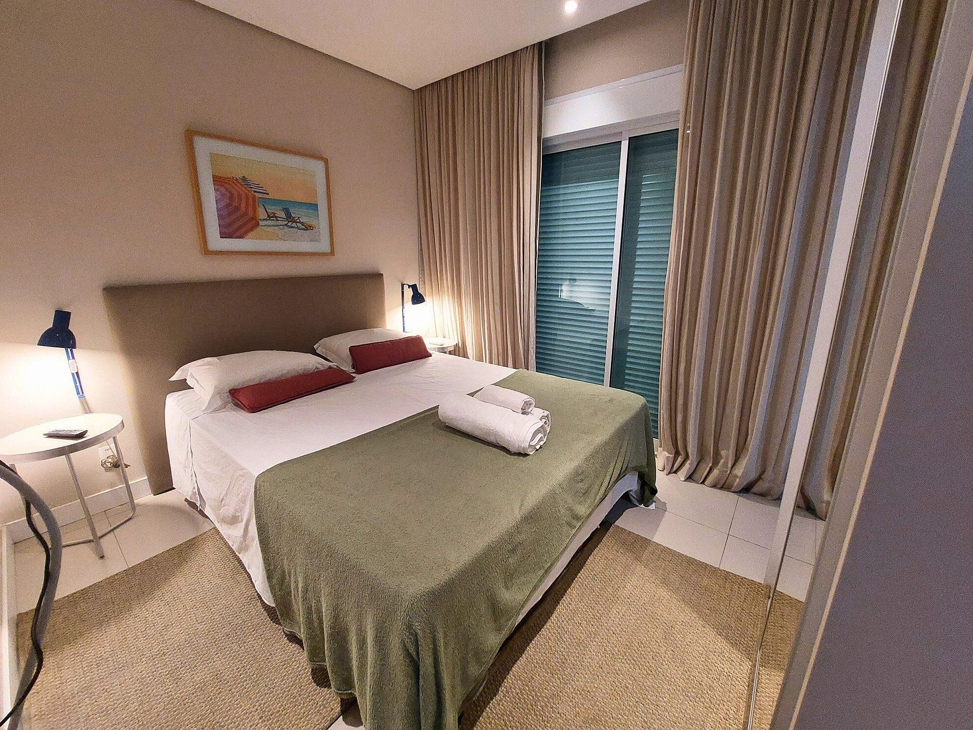 Sua reserva inclui: • Roupa de cama, travesseiros e toalhas (toalhas de banho/piscina), conforme o número de hóspedes pagantes, da seguinte forma: A cama de casal estará preparada com os lençóis e 2 travesseiros, 1 toalha de banho por pessoa, há 1 toalha de rosto e 1 toalha de piso por banheiro e 1 manta disponível no apartamento. Os itens para o sofá-cama ficam dentro do armário/gaveta, caso seja uma reserva para mais de 2 pessoas ○ Caso precise de enxoval extra, entre em contato conosco para verificar o valor para locação. • Cozinha equipada para sua comodidade; • Acesso às piscinas e demais áreas do condomínio, conforme regras internas; • Limpeza realizada por nossa equipe antes da sua chegada, garantindo que o apartamento esteja pronto para recebê-lo com conforto e qualidade. A Book Santos oferece anos de experiência e excelência em hospedagens de curta temporada. Temos certeza de que sua estadia será incrível conosco. Estamos te esperando! Para mais informações, consulte o documento Regras da Casa ou entre em contato conosco.