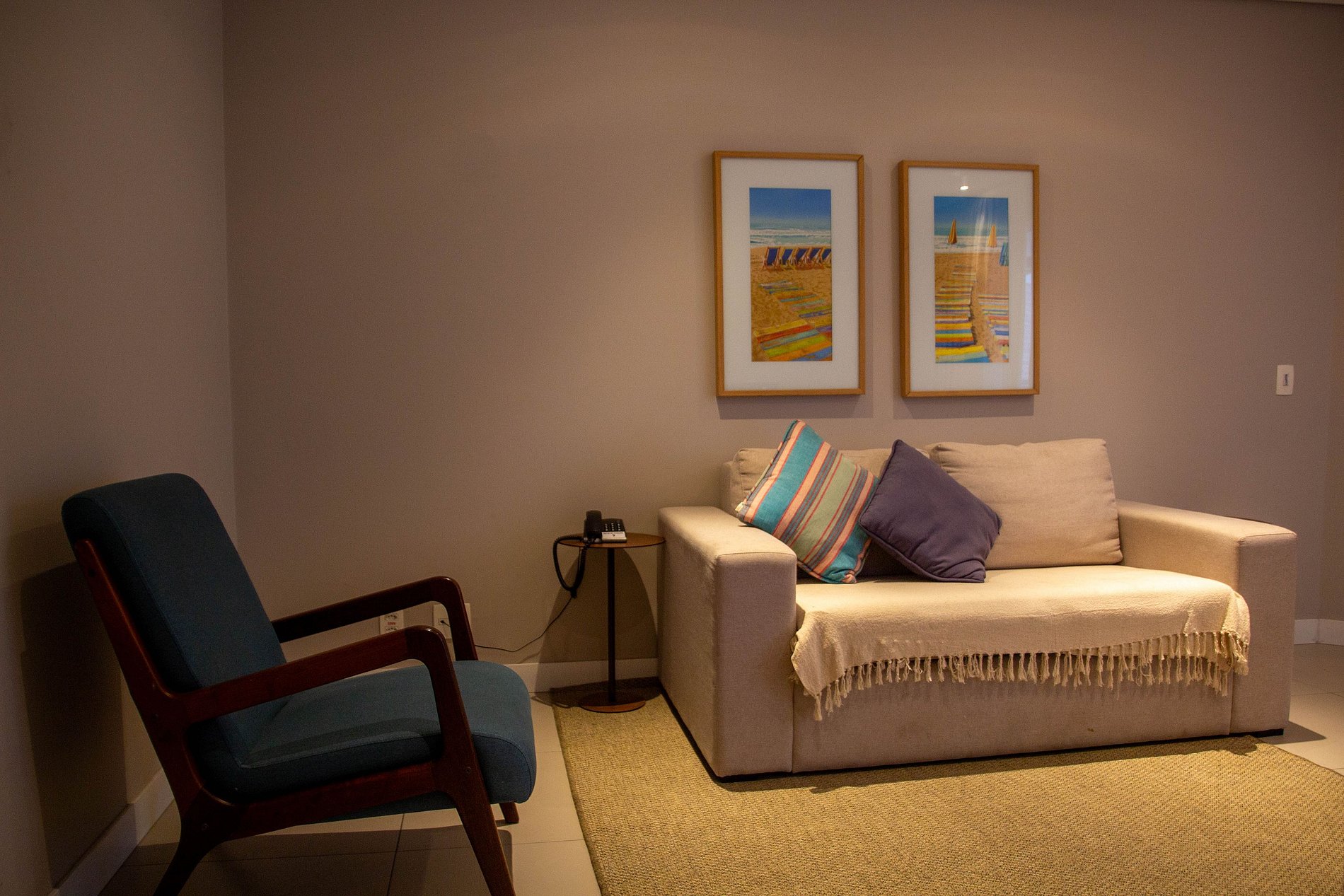 Área de estar com sofá/cadeira