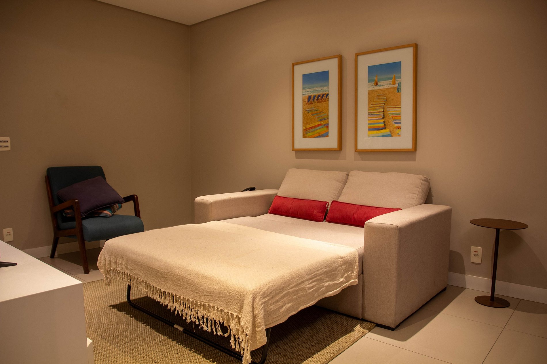 • ideal para até 4 pessoas, com uma cama de casal queen e um sofá-cama confortável.