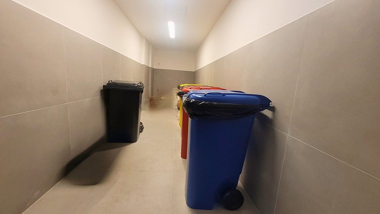 A vaga de garagem possui 2,40 m de largura por 4,80 m de comprimento, com demarcações individuais. Atenção: devido à altura limitada na rampa de acesso entre os andares, veículos do tipo SUV, pick-up ou modelos mais altos podem não ser compatíveis com o local.