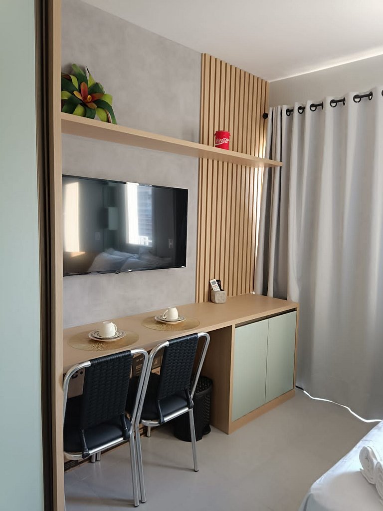 Localização excelente, flat perfeito, bem como no anúncio. Único ponto ruim são as cortinas que não seguram a claridade e logo cedo estava claro o quarto.