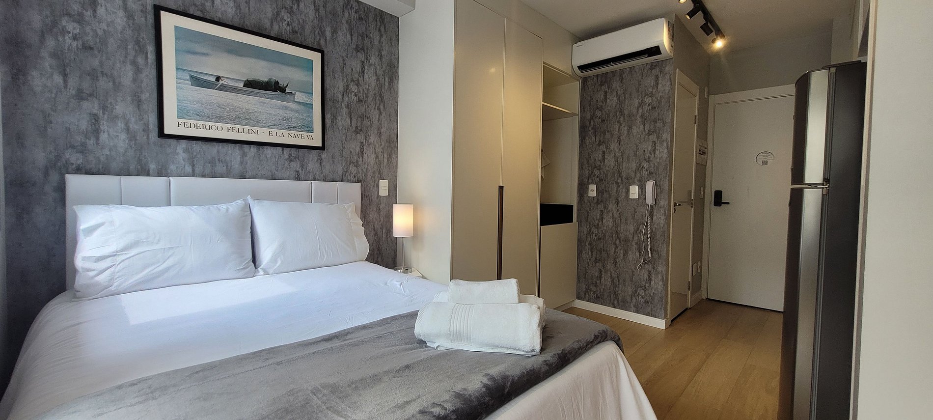 O estúdio é aconchegante e bem iluminado, com uma cama confortável, TV Smart e Wi-Fi de alta velocidade para garantir que você tenha uma estadia tranquila e confortável.