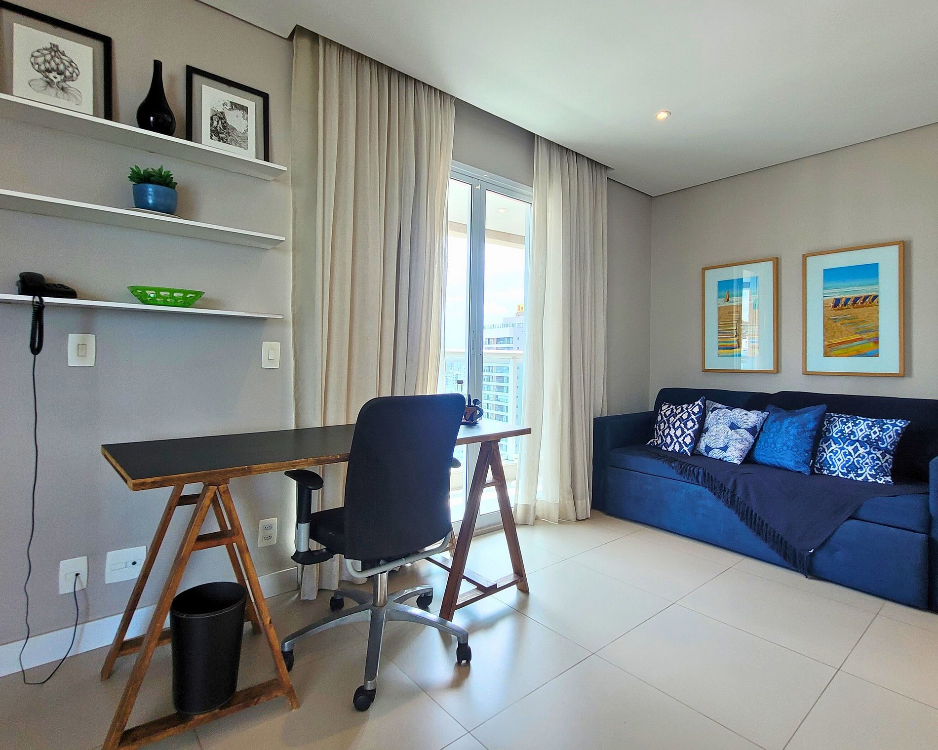 Aproveite a experiência de viver em Santos mesmo que por poucos dias, com cozinha equipada para preparar suas refeições, com fogão de indução e forno elétrico e com espaço para trabalhar nos dias de home office.