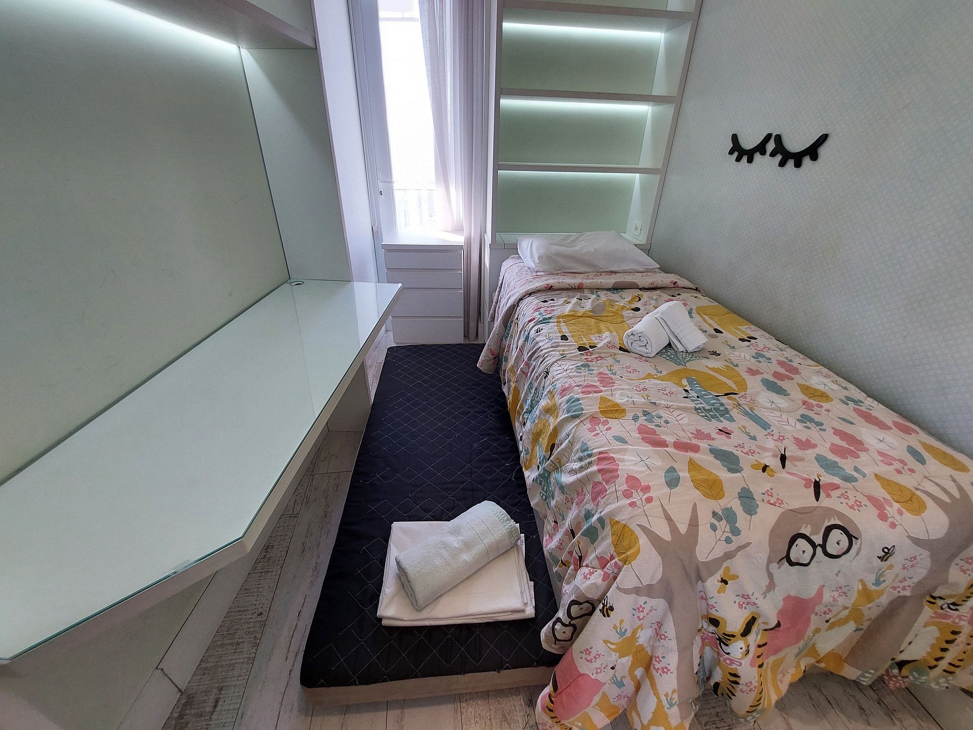Acomoda 4 pessoas em 2 quartos: cama queen e cama de solteiro com auxiliar. Decoração charmosa e aconchegante no melhor condomínio de Santos.