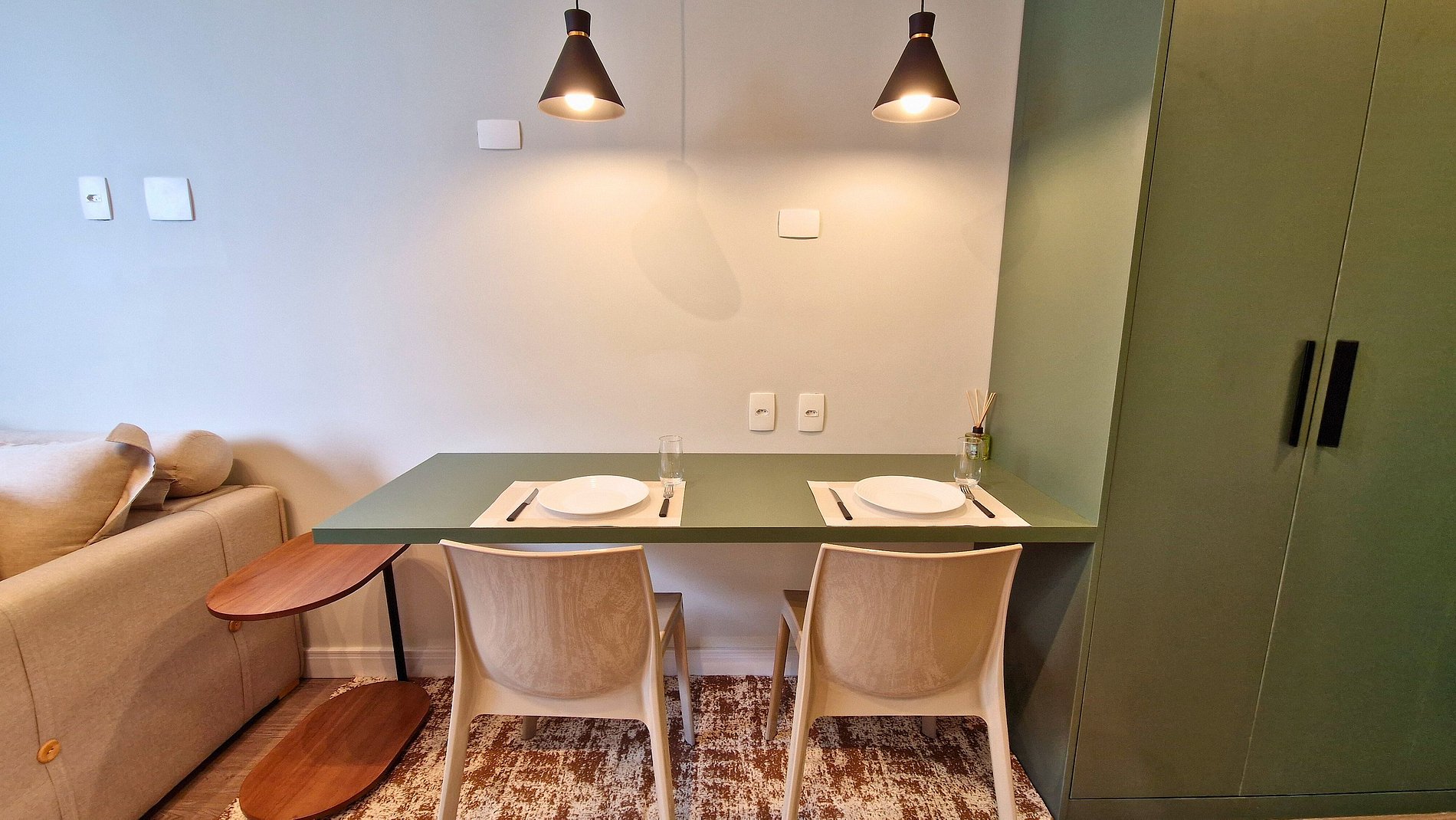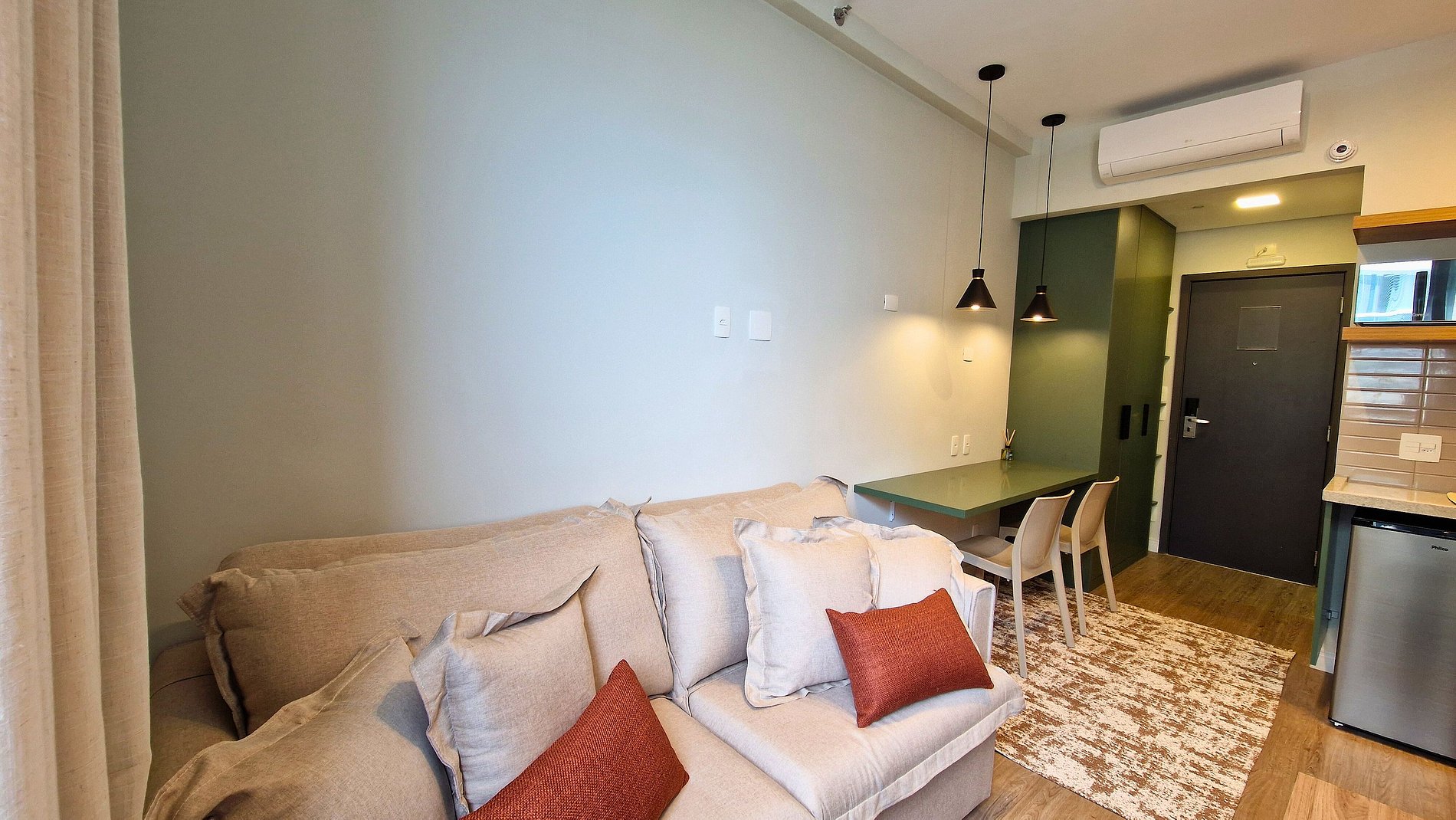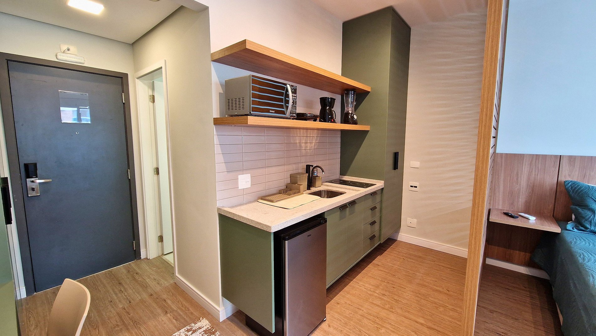 Estúdio 2304 – Helbor Stay: com 26m², novo, decorado em elegantes tons pastéis, confortável e a apenas 1 quadra da praia, com vista para o mar!