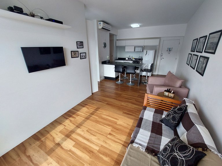 Muito bem localizado, prédio novo e cheio de ammenities, como piscina aquecida e academia completa.