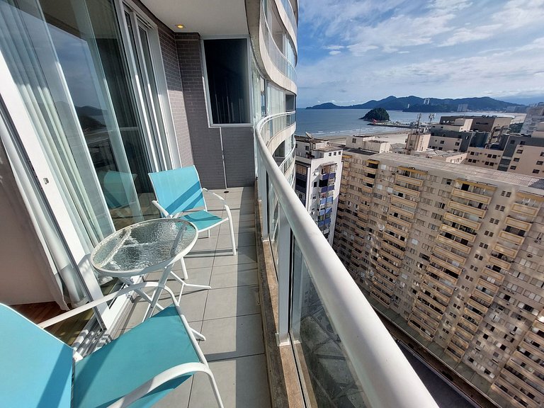 O apartamento 1709 possui vista para o mar sentido Emissário e morro Santa Terezinha, ele acomoda uma familia de até 5 pessoas havendo uma cama queen, sofá cama com auxiliar e uma poltrona que vira colchão.