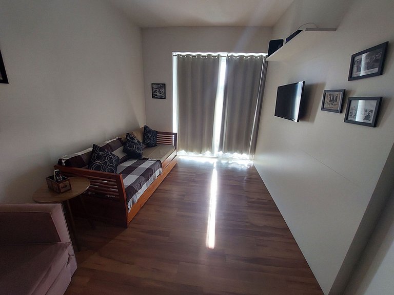 Apto maravilhoso! O condomínio é incrivelmente bem equipado (2 piscinas, sala de jogos, academia, lavanderia, estacionamento coberto, portaria 24hrs), muito bem localizado (literalmente na frente da praia), com restaurantes e mercados há menos de 2 min a pé. O apto tem ar condicionado, cozinha muito bem equipada e varanda. Super recomendo a todos e sem dúvidas iremos voltar mais vezes