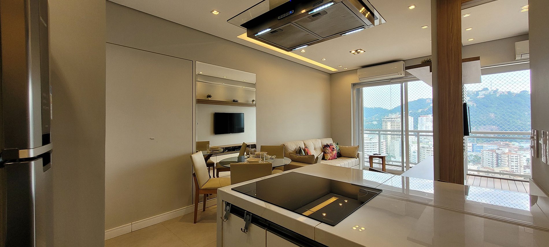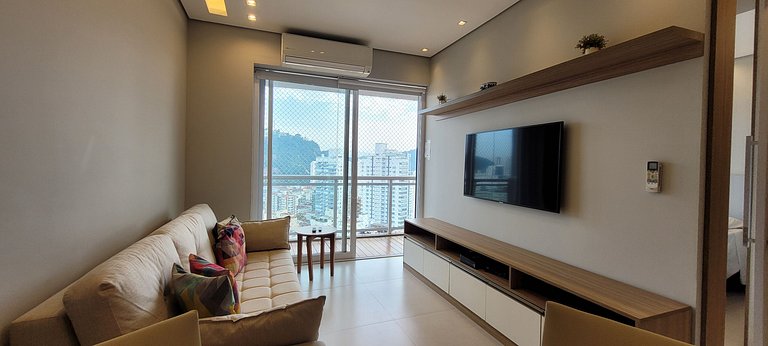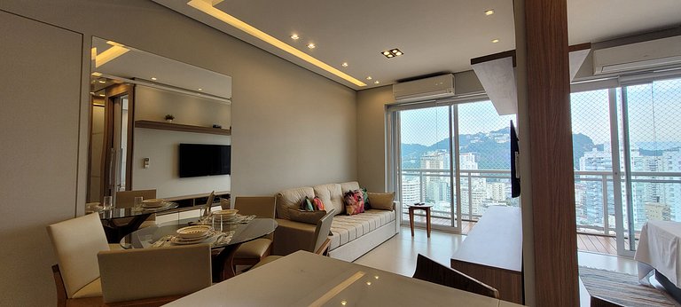 Apartamento lindo. De muito bom gosto. Tudo na mais perfeita ordem. Vista para Sao vicente e piscina do fundo.