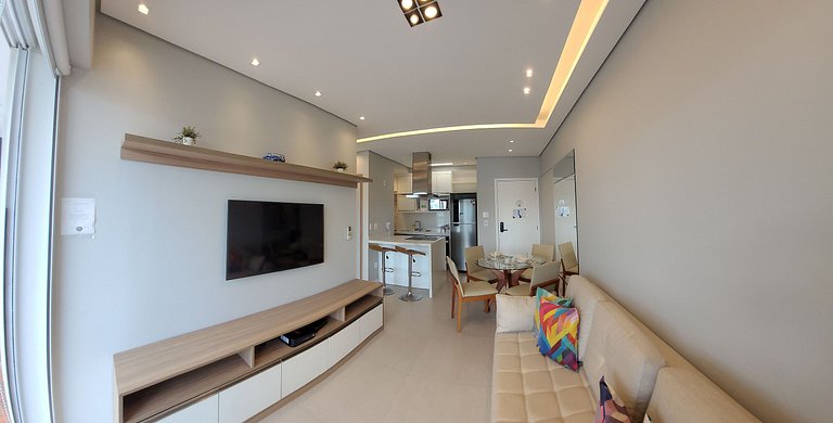 • Possui sacada telada com linda vista para o mar e o Emissário — perfeita para quem viaja com crianças.