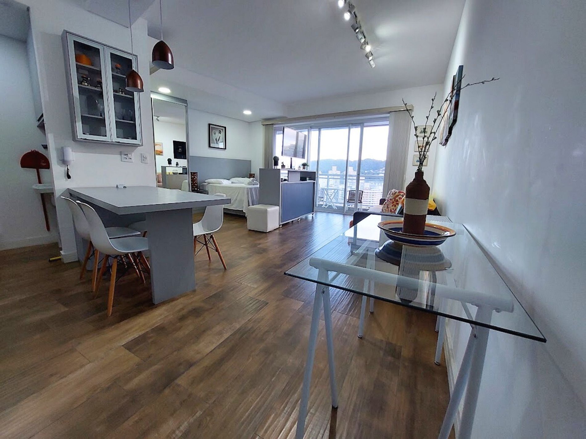O apartamento 1910, com 50m² localizado no 19º andar, acomoda até 4 pessoas e está no melhor condomínio de Santos, o Unlimited Ocean Front! Oferece uma bela vista lateral para o mar. Aceita cães de pequeno e médio porte (até 15kg) mediante taxa adicional de R$ 120,00. Gatos não são aceitos.