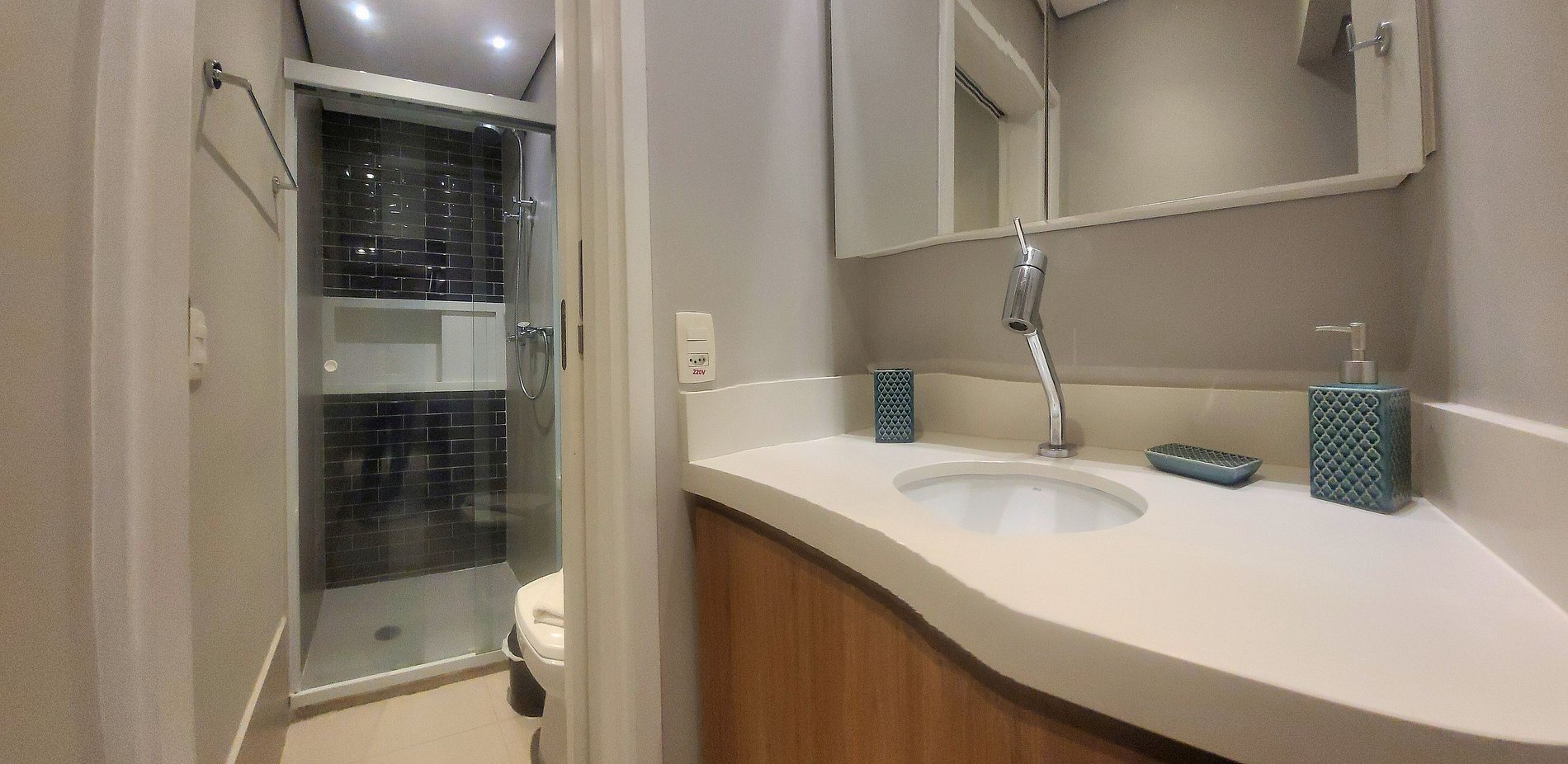 O condomínio possui recepção 24h, manobrista está a sua disposição, piscina e academia para você relaxar após a praia ou após um dia de muito trabalho, além de contar com uma loja de conveniência com itens de necessidades básicas e algumas guloseimas!