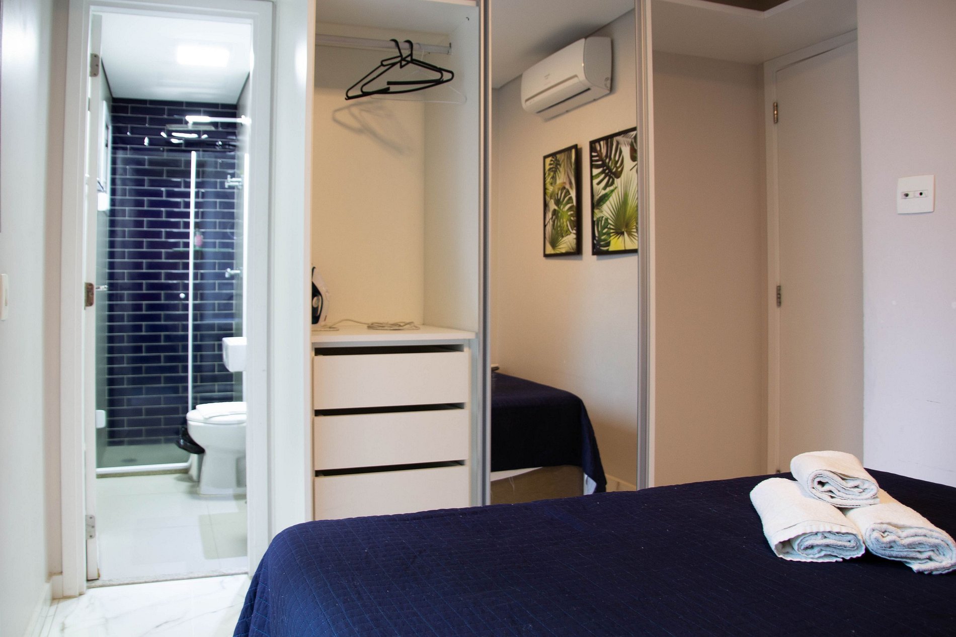 a porta do quarto de solteiro não estava funcionando mas imediatamente a administração enviou pessoa pra conserto e que constatou ser necessário desmontar armario (responsabilidade proprietario).