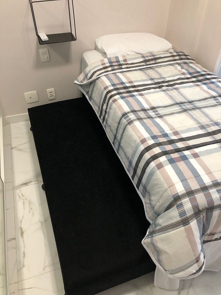 • com uma área total de 69 m², possui 2 quartos, na suíte será possível acordar com essa vista graças a uma pequena sacada privativa, no outro quarto há uma cama de solteiro com auxiliar.