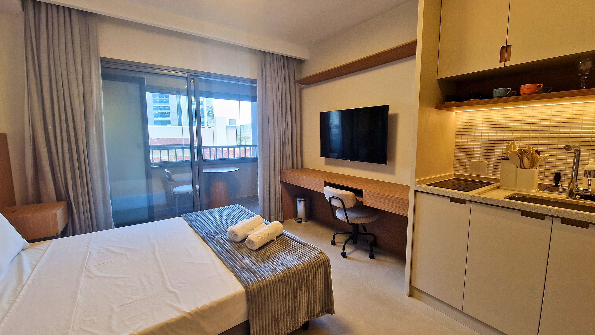 Desfrute de uma estadia moderna e prática no estúdio Nex One Faria Lima 207!