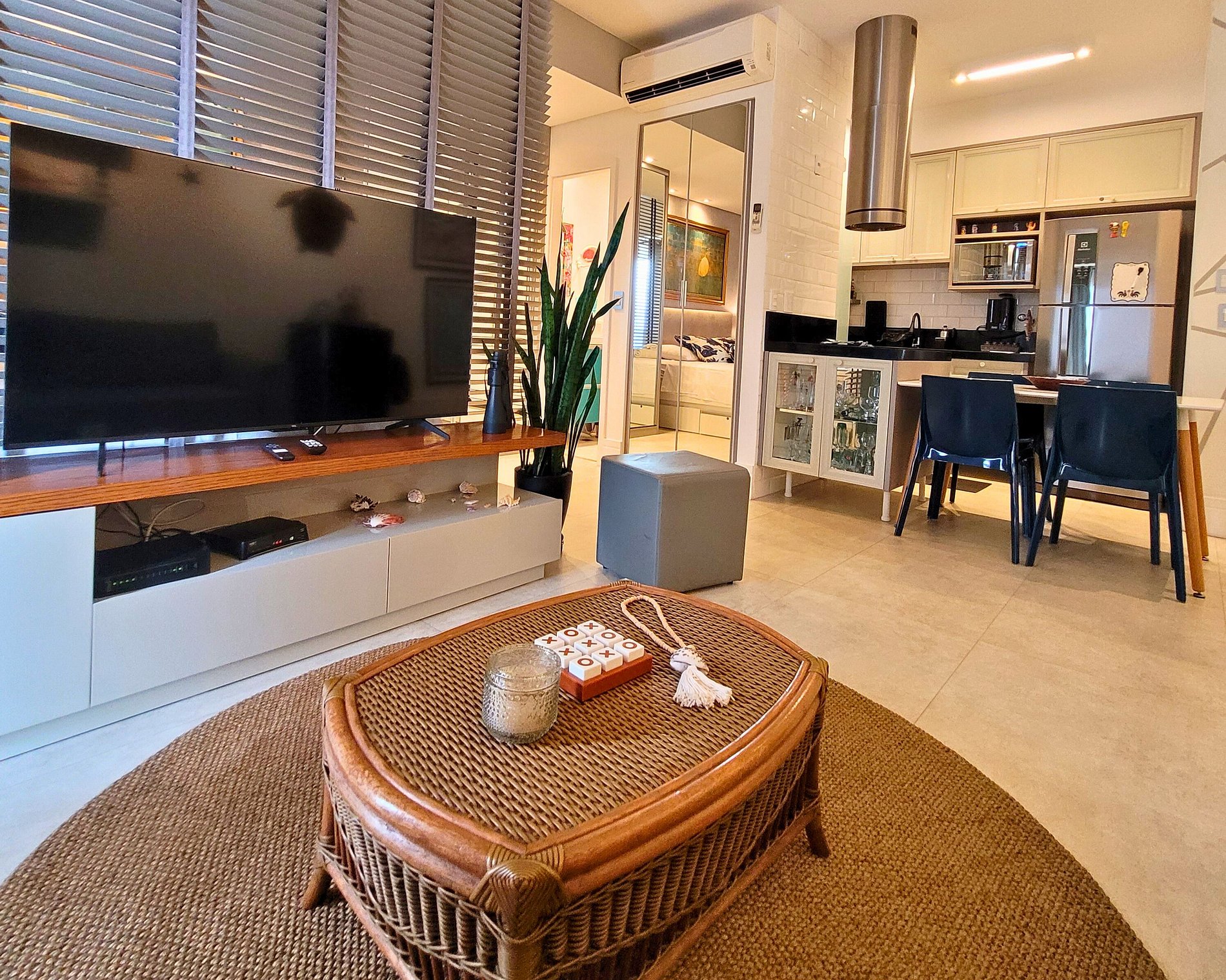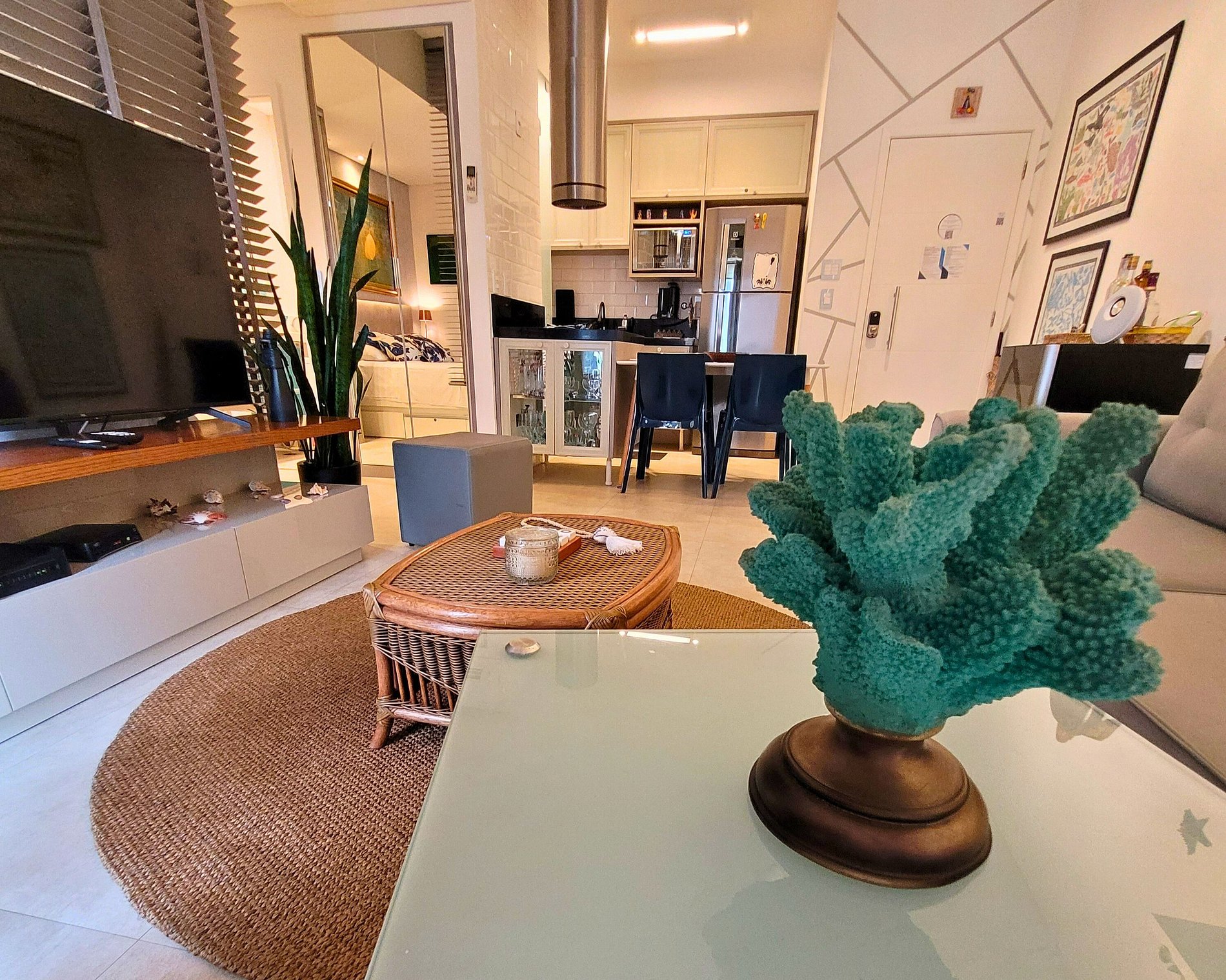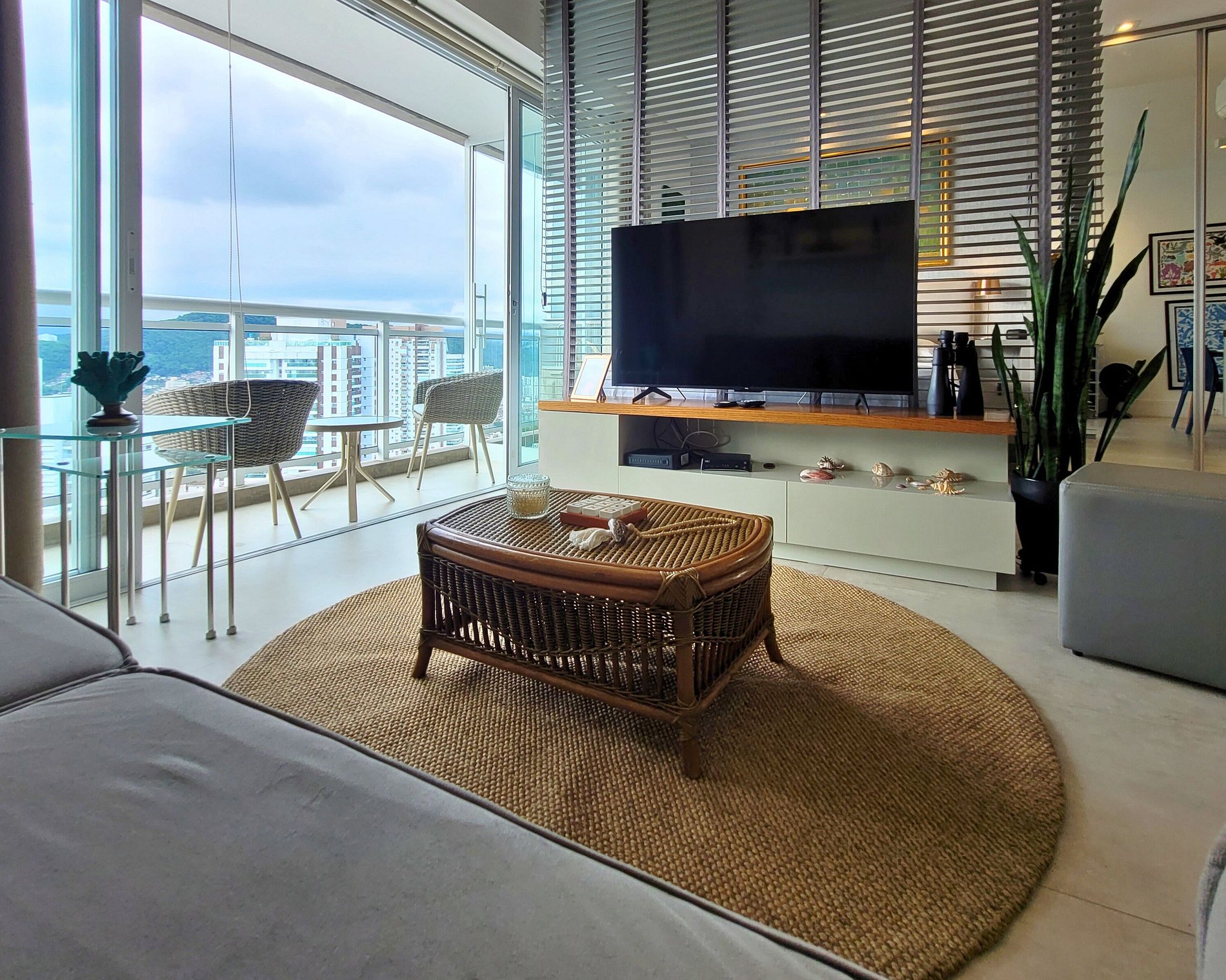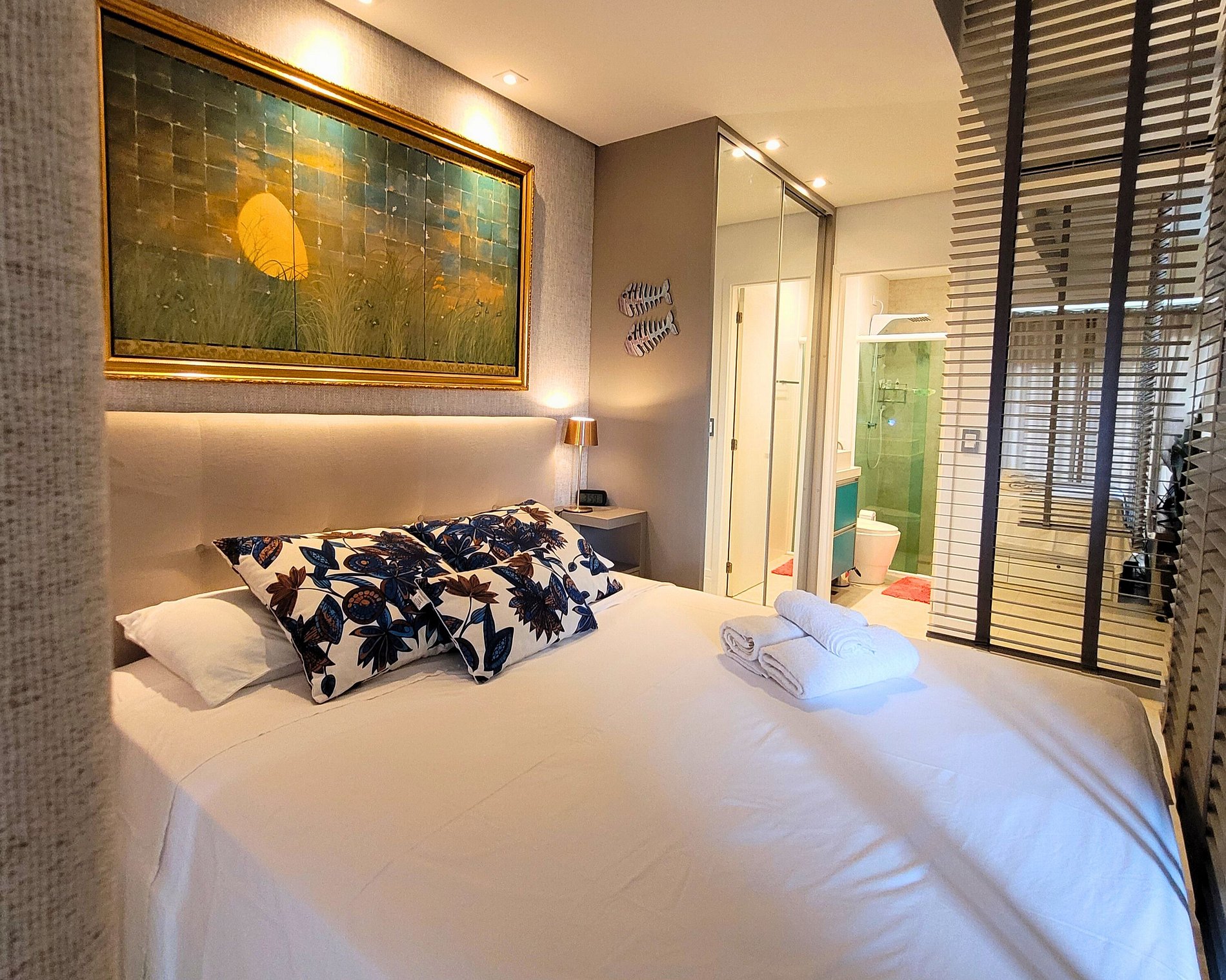 O espaço é indicado para casais e viajantes de negócios, há também um sofá de 1,75m² para o 3º hóspede. Com uma tv de 55" e som ambiente, com seus 49 m² com certeza vai te trazer momentos memoráveis no melhor condomínio de Santos!