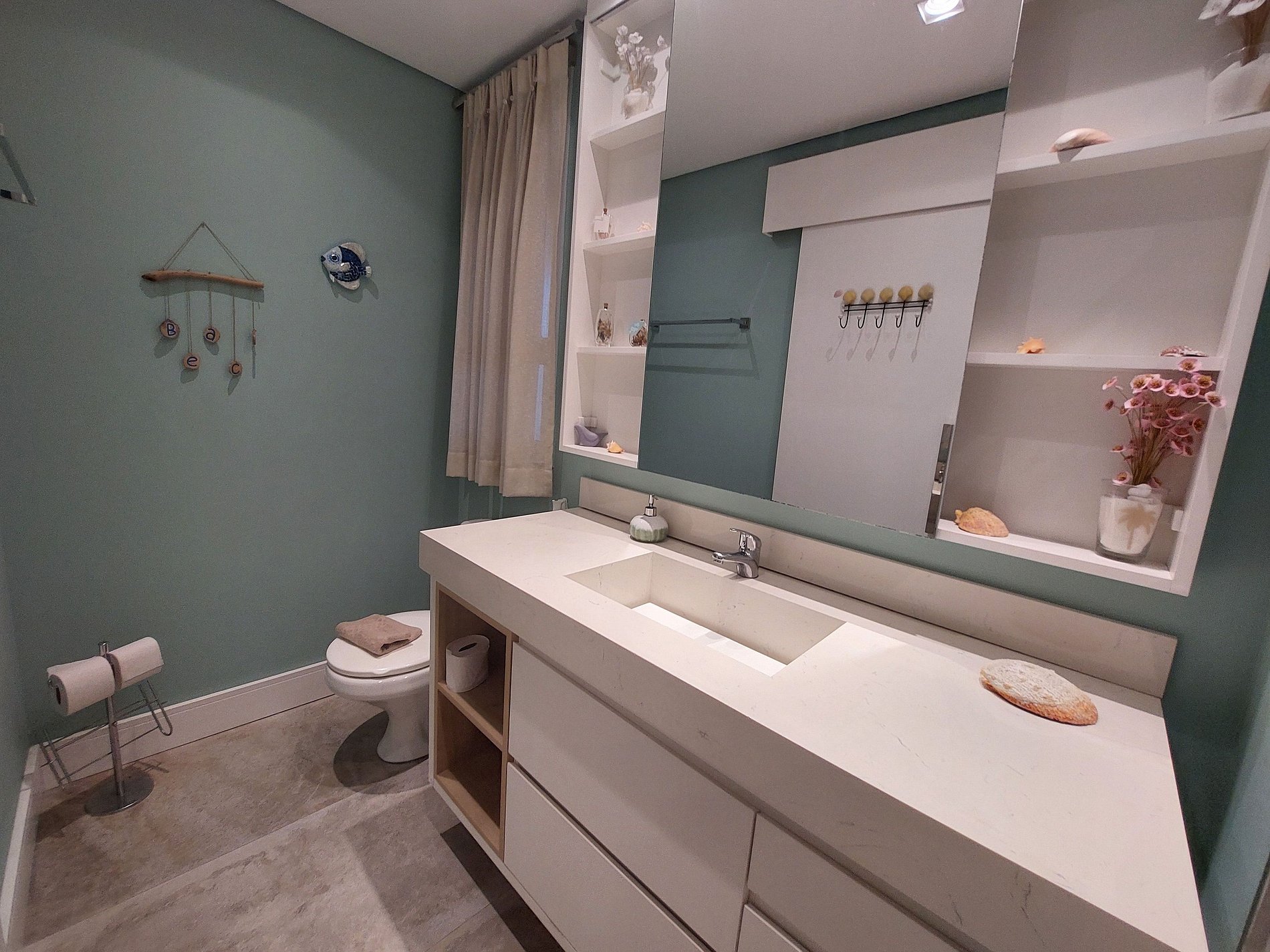 Deslumbrante talvez seja a palavra que resume a experiência no apartamento 1608. Com uma vista panorâmica da cidade, é possível avistar o leste, norte e oeste de Santos, por uma sacada toda envidraçada. Ele possuí 3 quartos, sendo uma suíte além de 2 vagas de garagem!