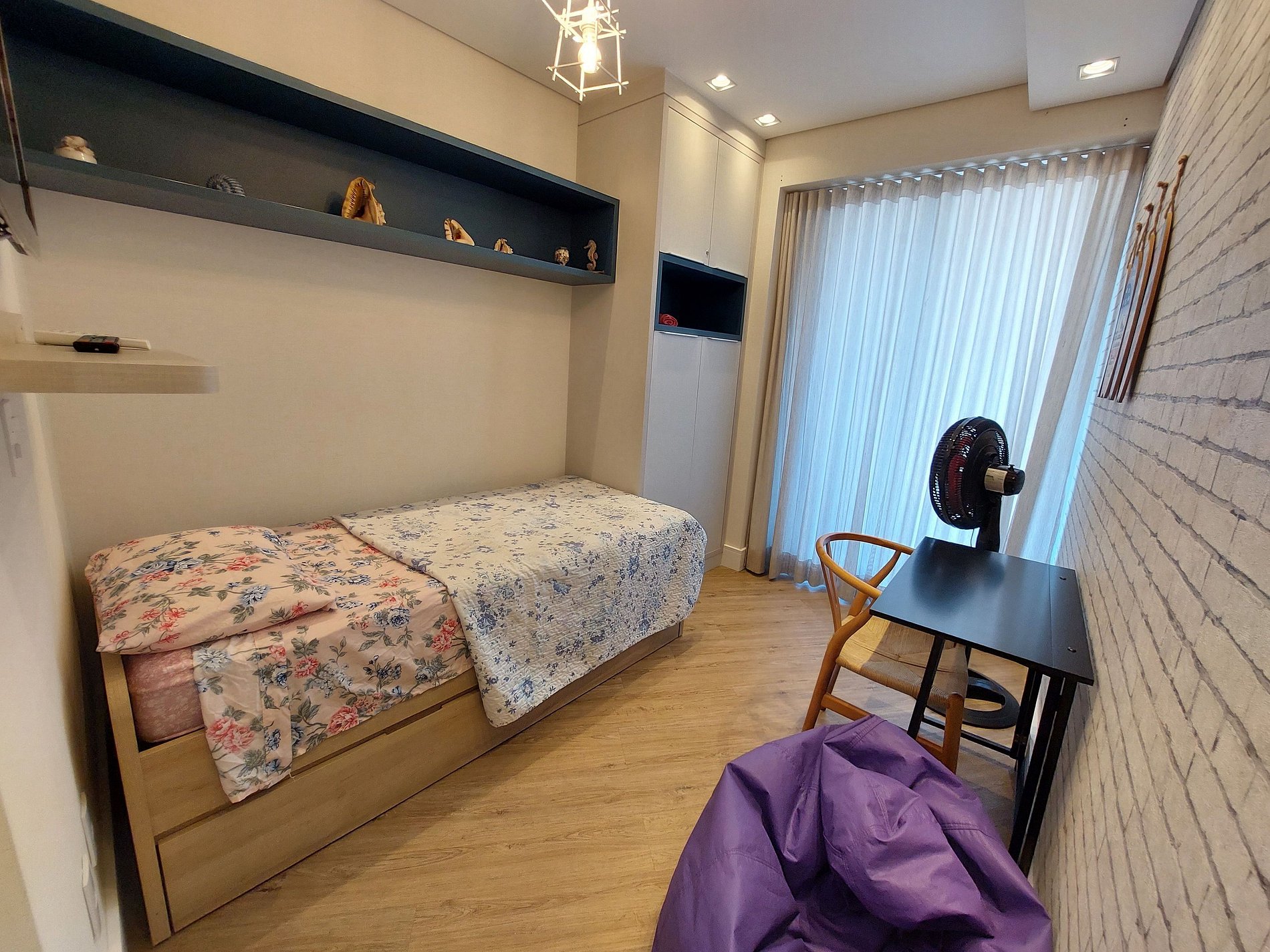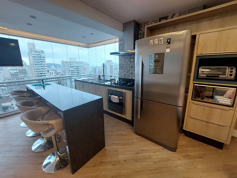Deslumbrante talvez seja a palavra que resume a experiência no apartamento 1608. Com uma vista panorâmica da cidade, é possível avistar o leste, norte e oeste de Santos, por uma sacada toda envidraçada. Ele possuí 3 quartos, sendo uma suíte além de 2 vagas de garagem!