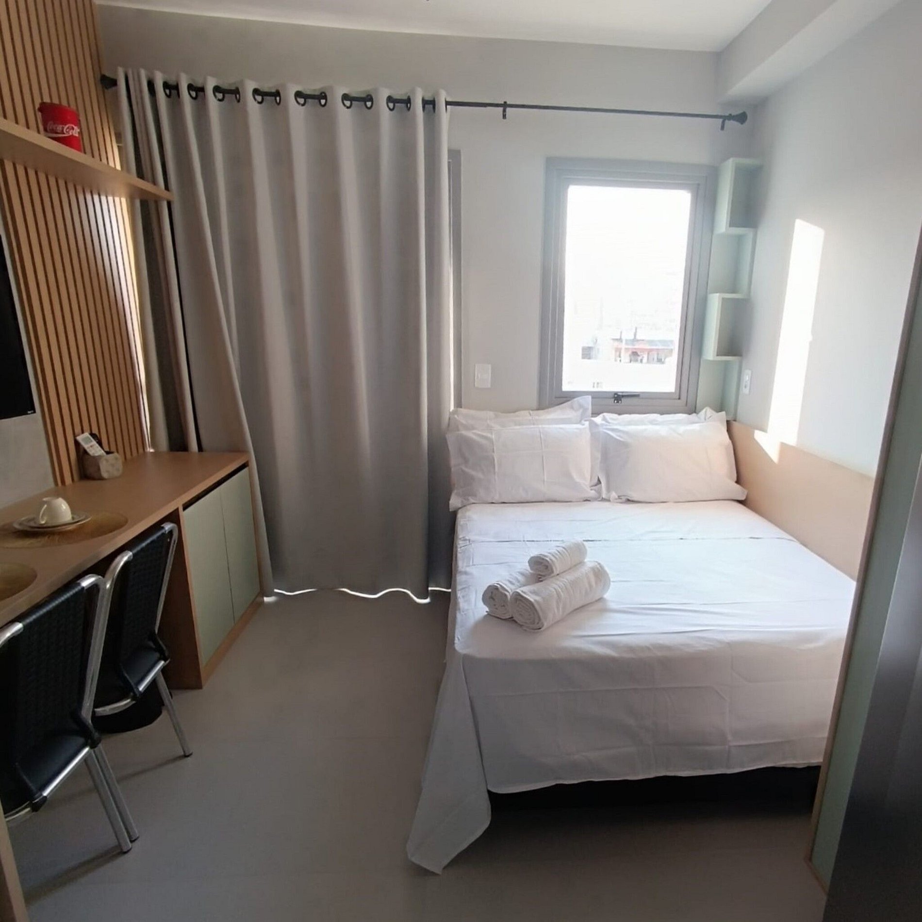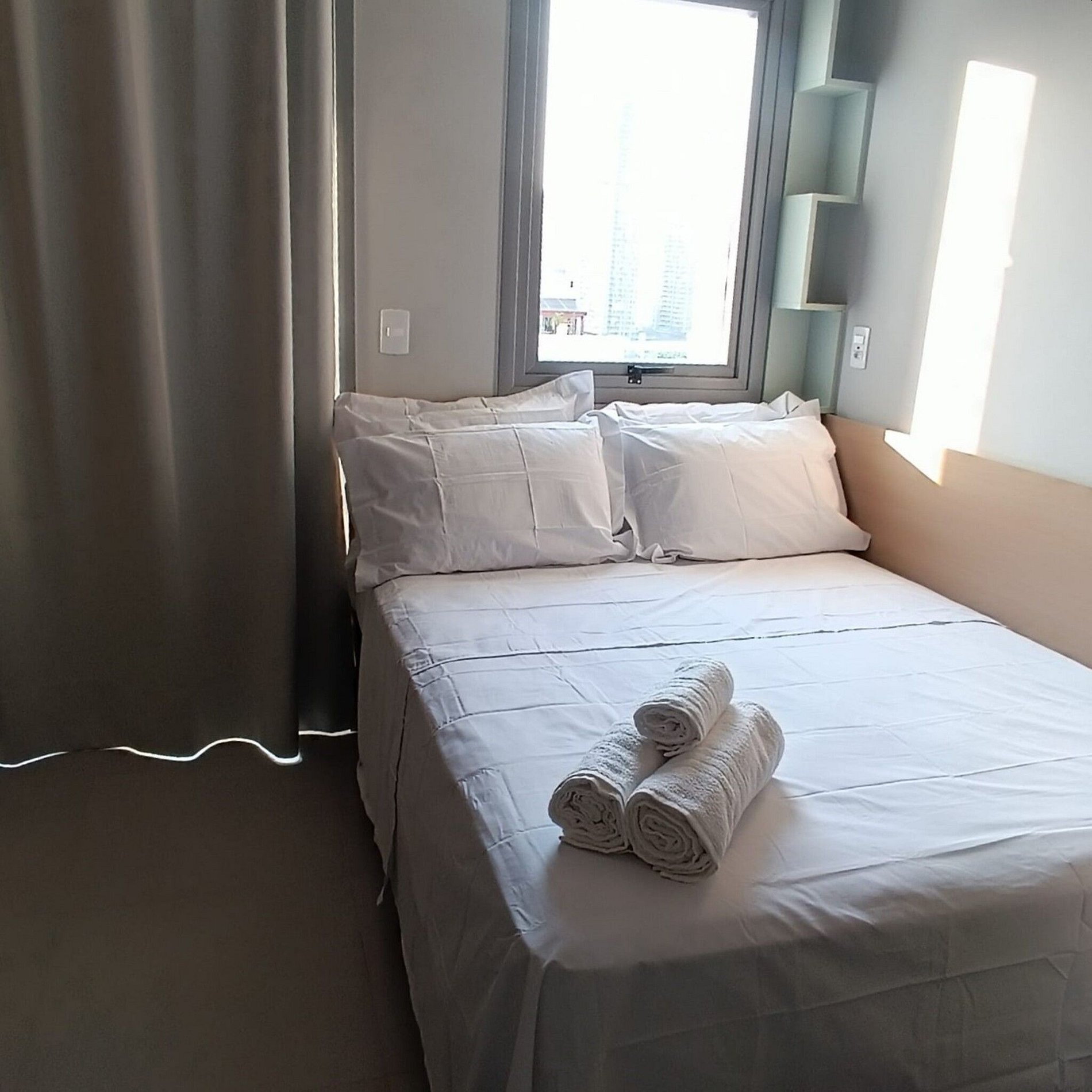 Localização excelente, flat perfeito, bem como no anúncio. Único ponto ruim são as cortinas que não seguram a claridade e logo cedo estava claro o quarto.
