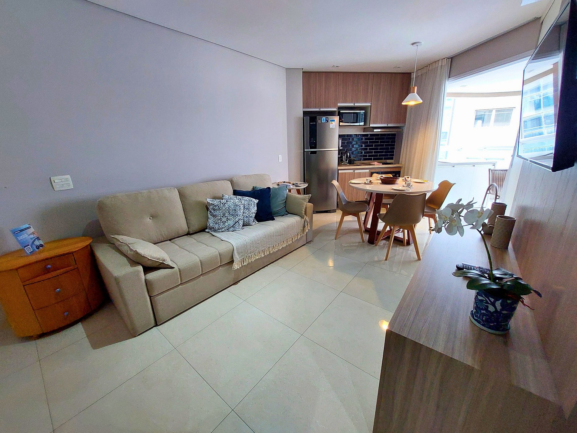 O apartamento 1503 acomoda até 4 pessoas em 45 m², e está estrategicamente localizado a apenas uma quadra da praia, oferecendo a combinação ideal de conforto e proximidade com o mar.