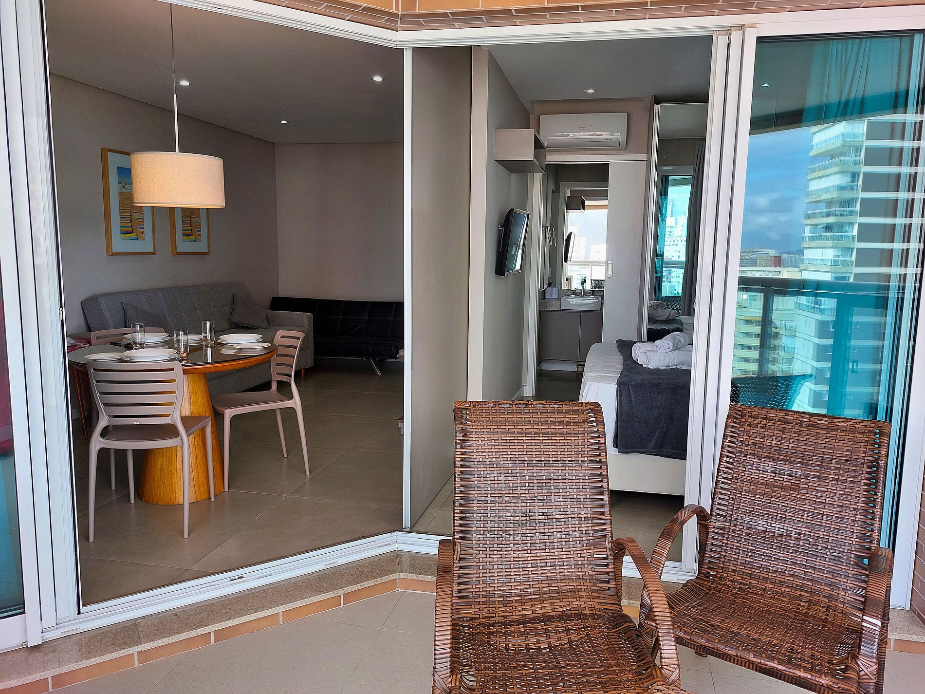 O apartamento 2010 possui um alto padrão aliado com a praticidade dos serviços de excelência de um luxuoso condomínio, além da vista maravilhosa que te espera, sendo possivel jantar com vista mar, acomoda confortavelmente até 3 adultos ou 2 adultos e 2 crianças em seus 45m².