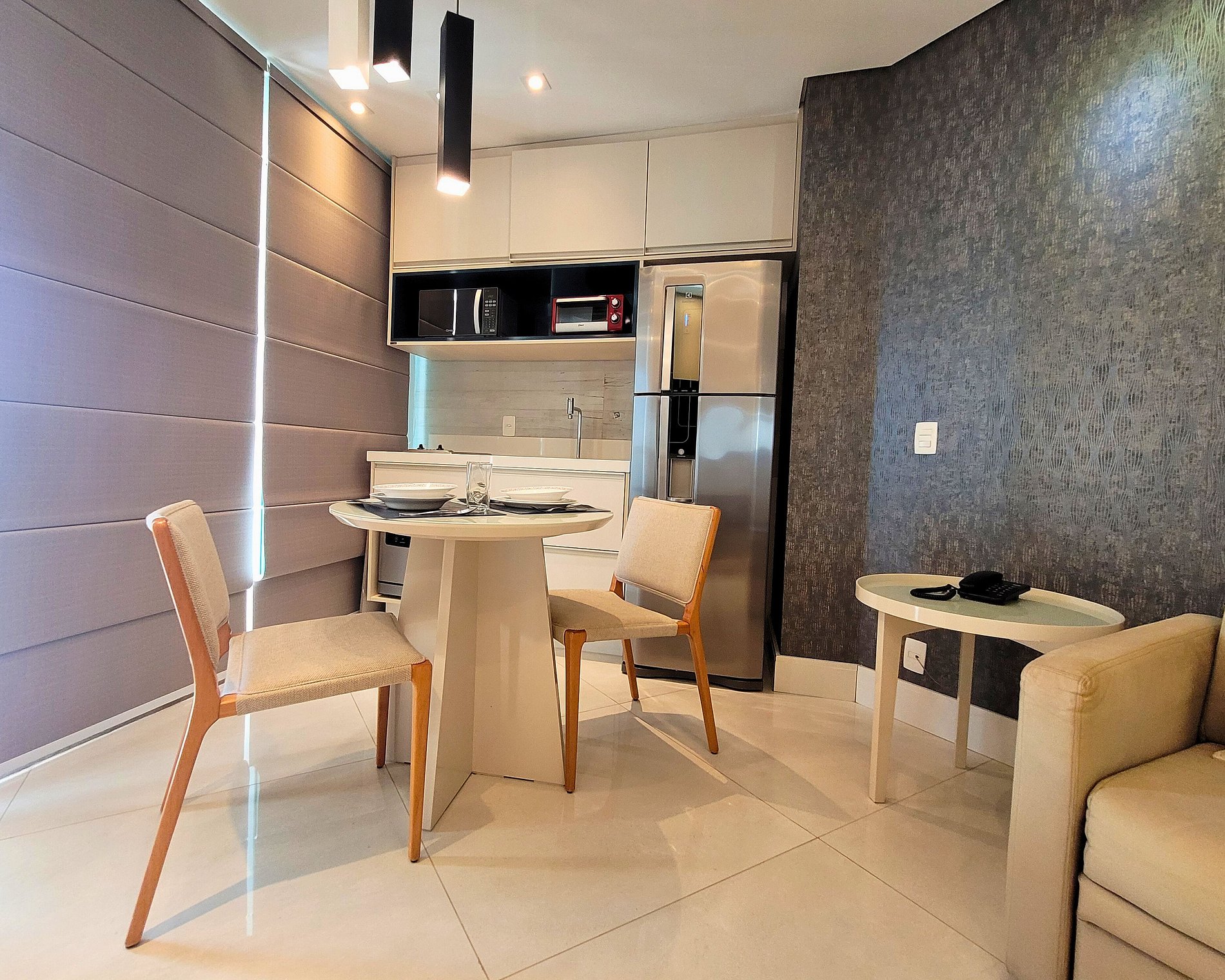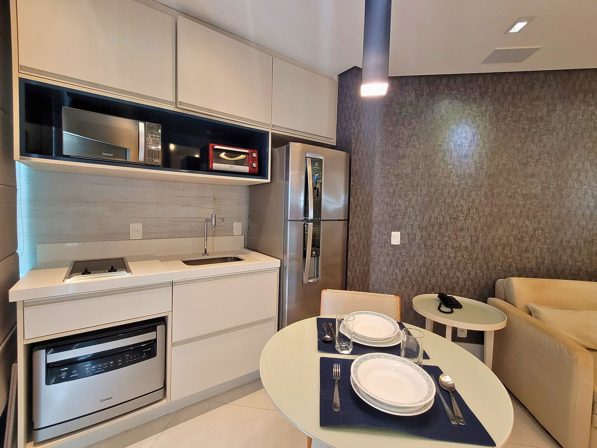 O condomínio possui recepção 24h, manobrista está a sua disposição, piscina e academia para você relaxar após a praia ou após um dia de muito trabalho, além de contar com uma loja de conveniência com itens de necessidades básicas e algumas guloseimas!
