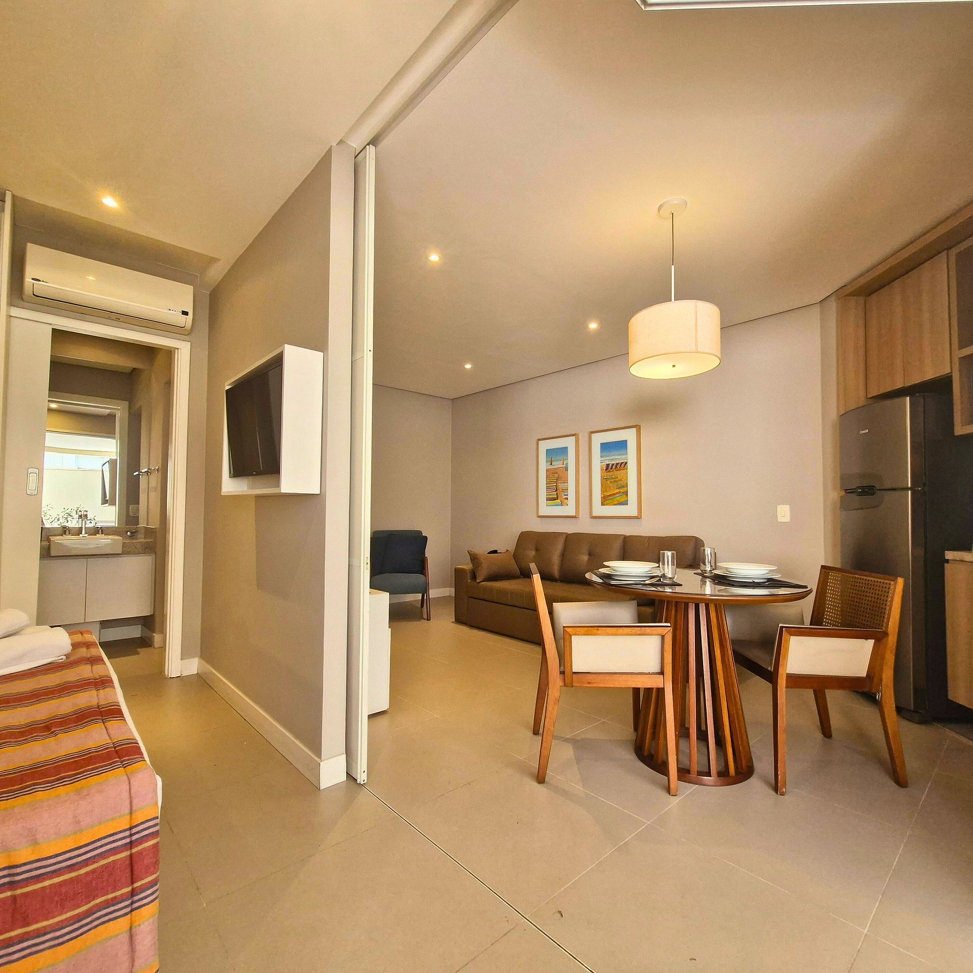 Em sua reserva estará incluso: roupa de cama, travesseiros e toalhas (exceto toalha de piscina/praia) de acordo com a quantidade de hóspedes pagantes, 1 manta para utilização durante a hospedagem, cozinha equipada e acesso às piscinas e demais ambientes do condomínio conforme regras do mesmo, limpeza efetuada por nossa equipe para lhe receber e preparar o apartamento e após a reserva, tudo para que o seu bem-estar esteja garantido.