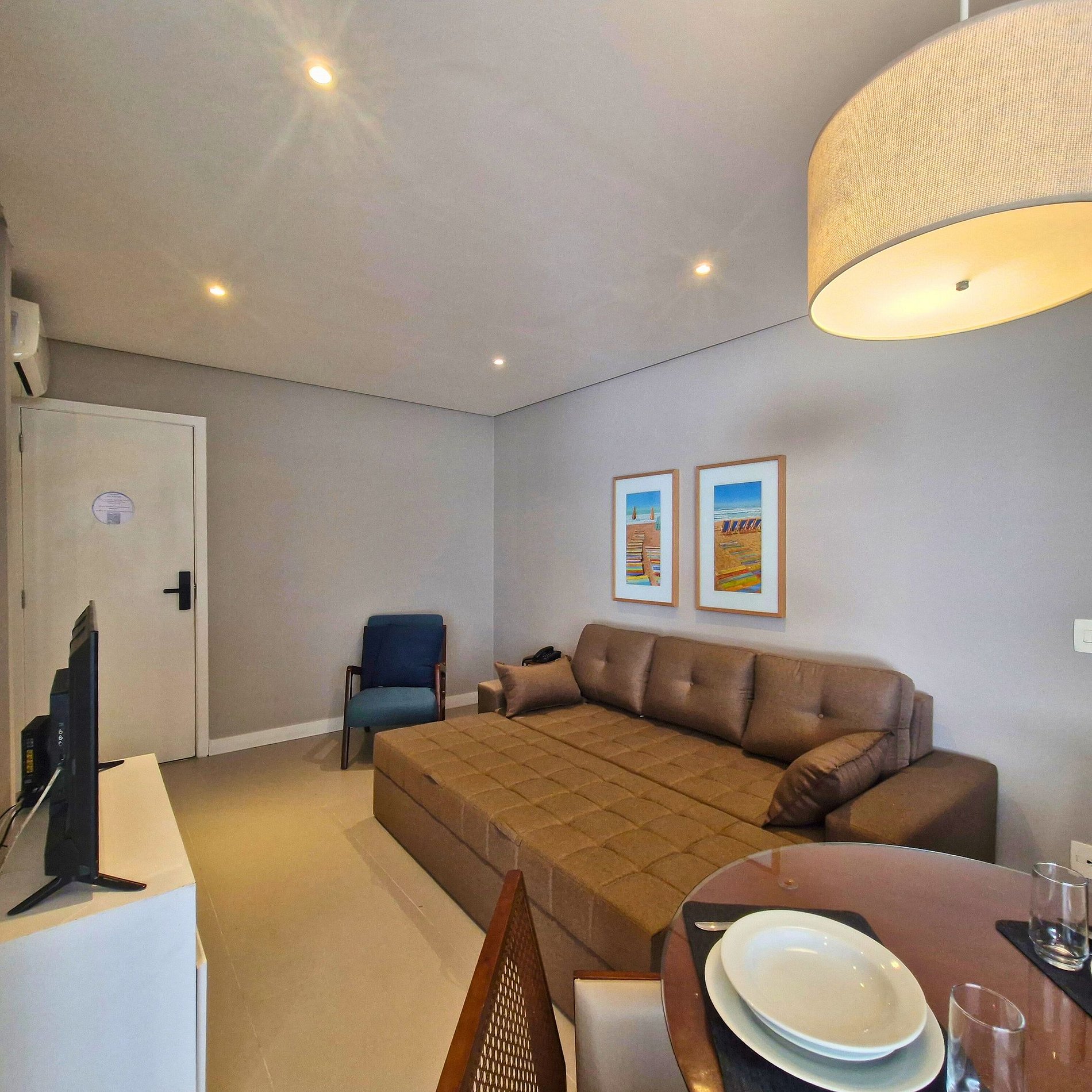 O condomínio possui recepção 24h, manobrista está a sua disposição, piscina e academia para você relaxar após a praia ou após um dia de muito trabalho, além de contar com uma loja de conveniência com itens de necessidades básicas e algumas guloseimas!