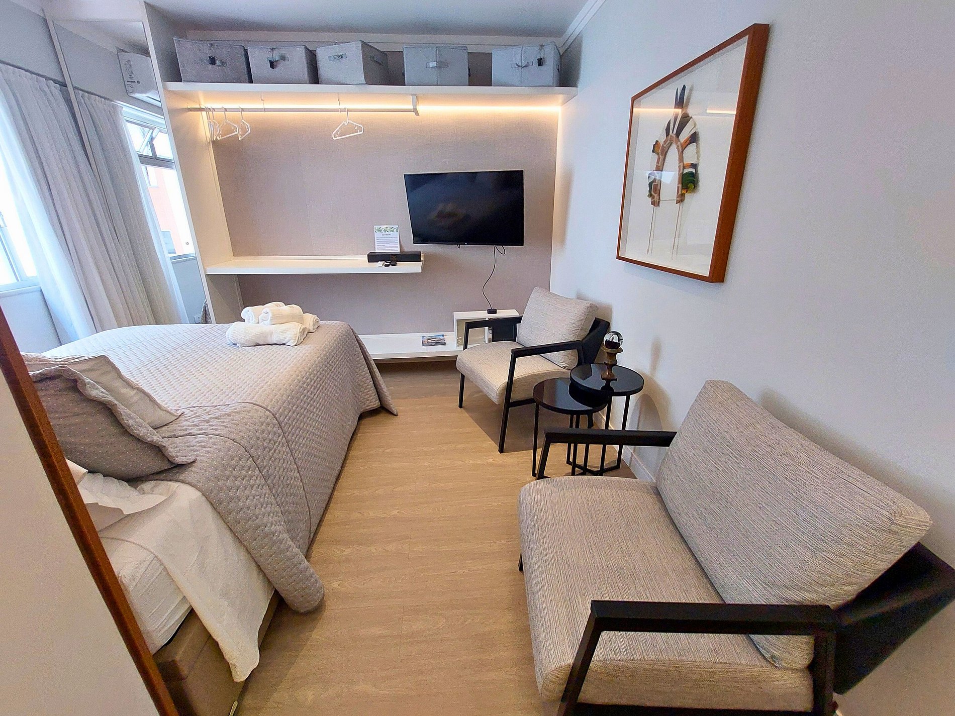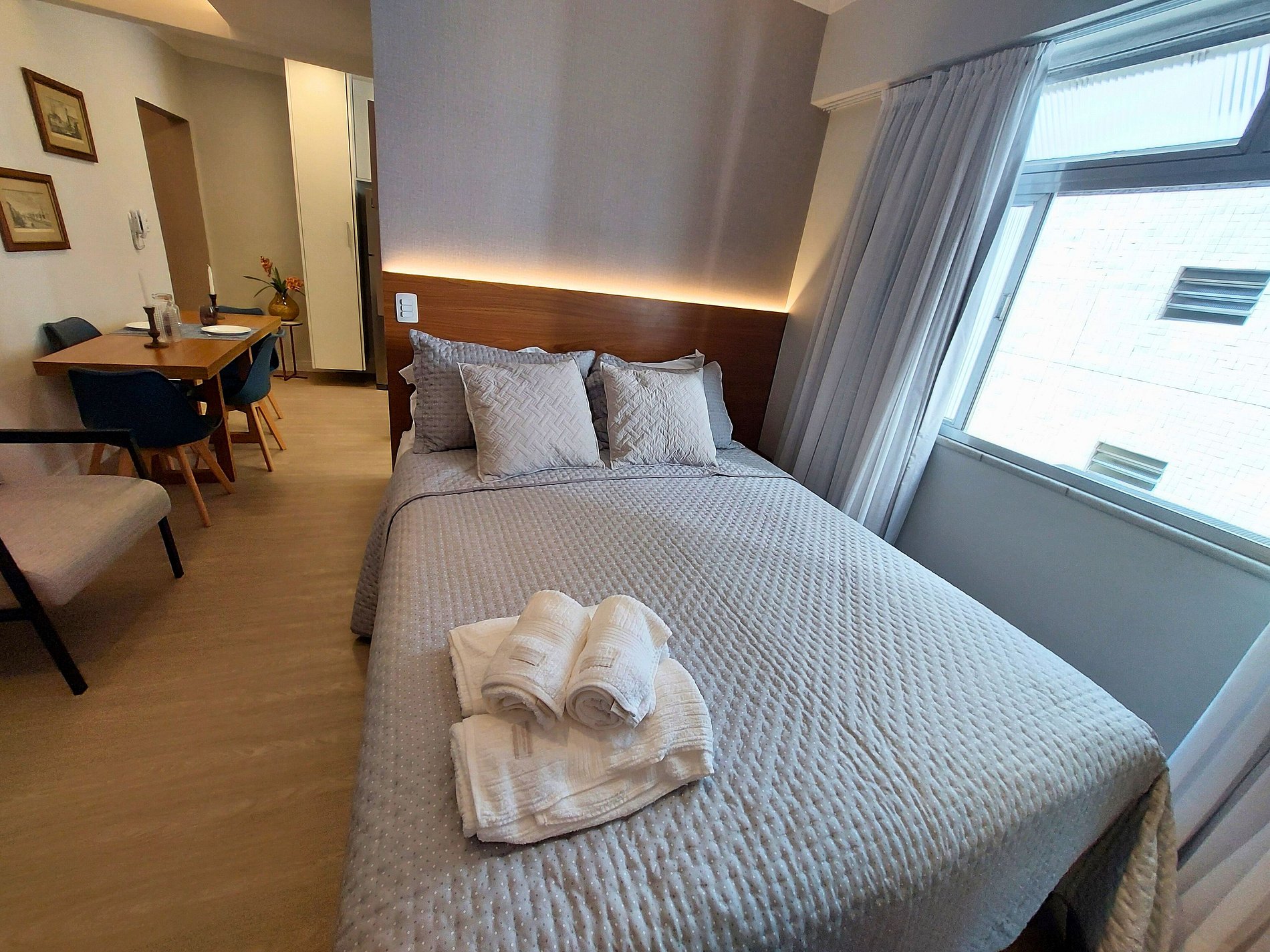 Quarto muito confortável, limpo e numa otima localização e haviam todos os utensílios necessarios para cozinhar. Como dito nos comentários, o prédio é antigo, mas bem adaptado a receber hospedes por temporada, e o pessoal que trabalha lá e bem solicito