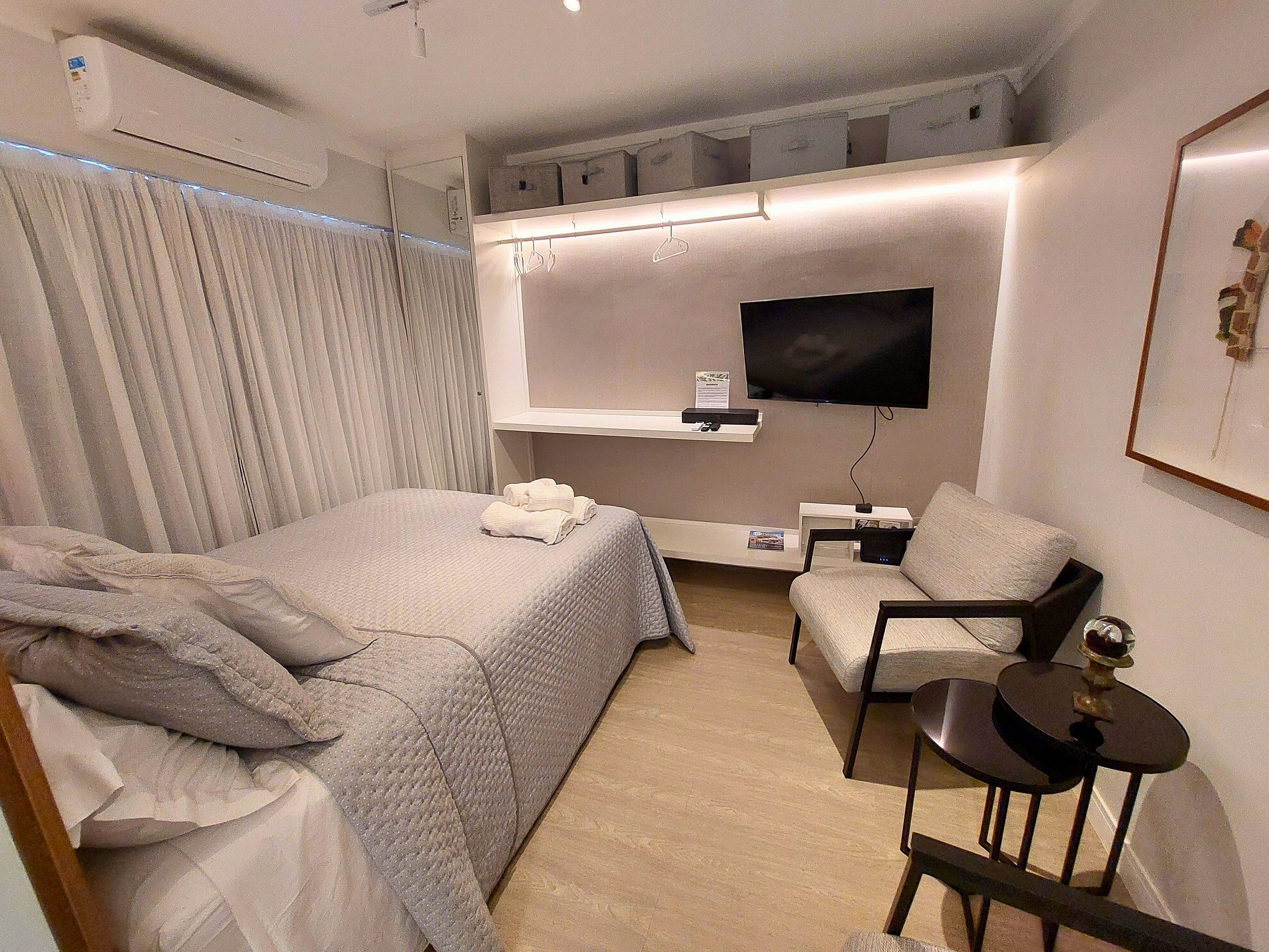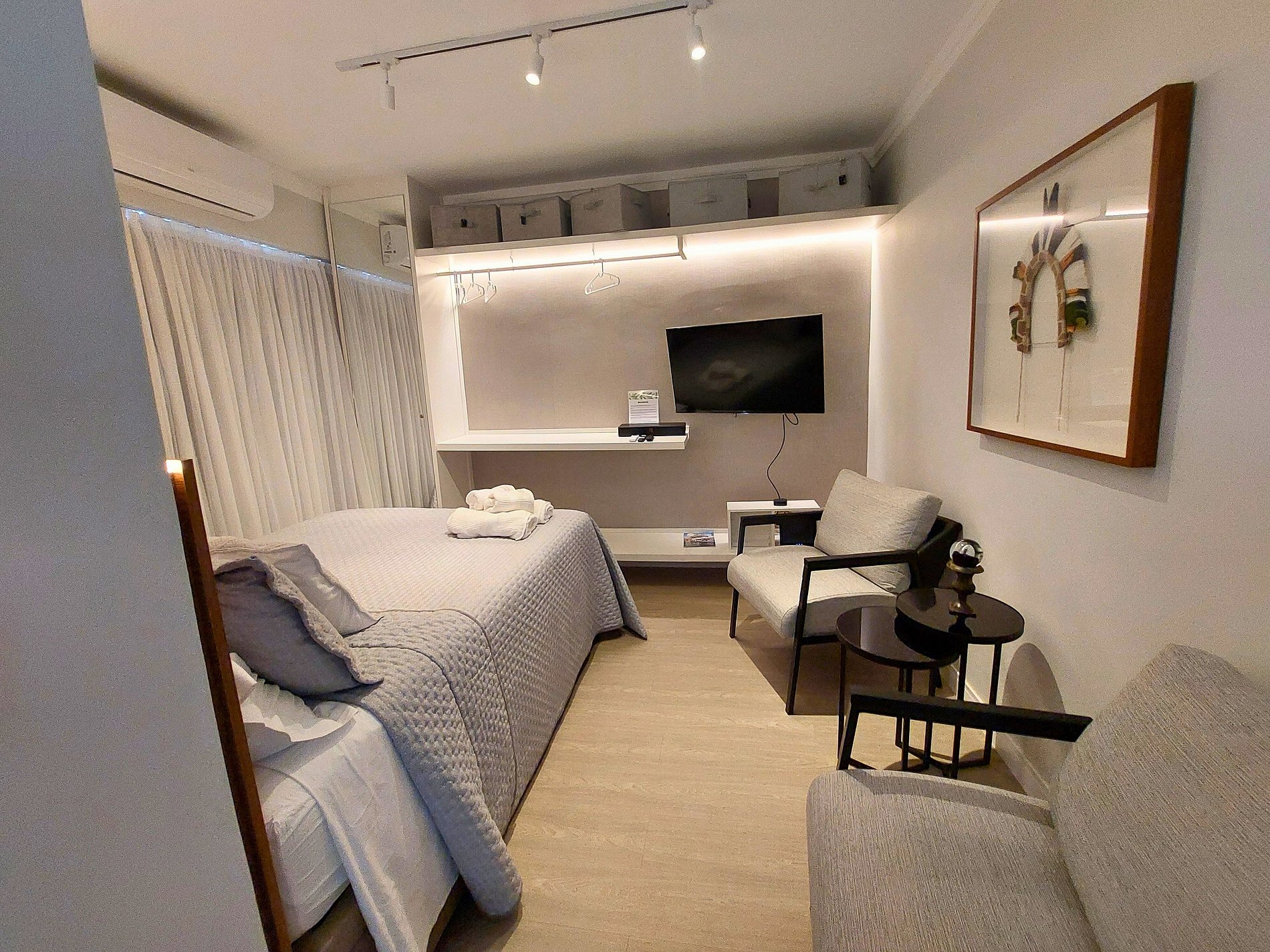 Com seus 36m², oferece conforto para acomodar duas pessoas, dispondo de um quarto super confortável com cama queen e uma cozinha totalmente equipada projetado pelo arquiteto Raphael Pinheiros da Arq2.