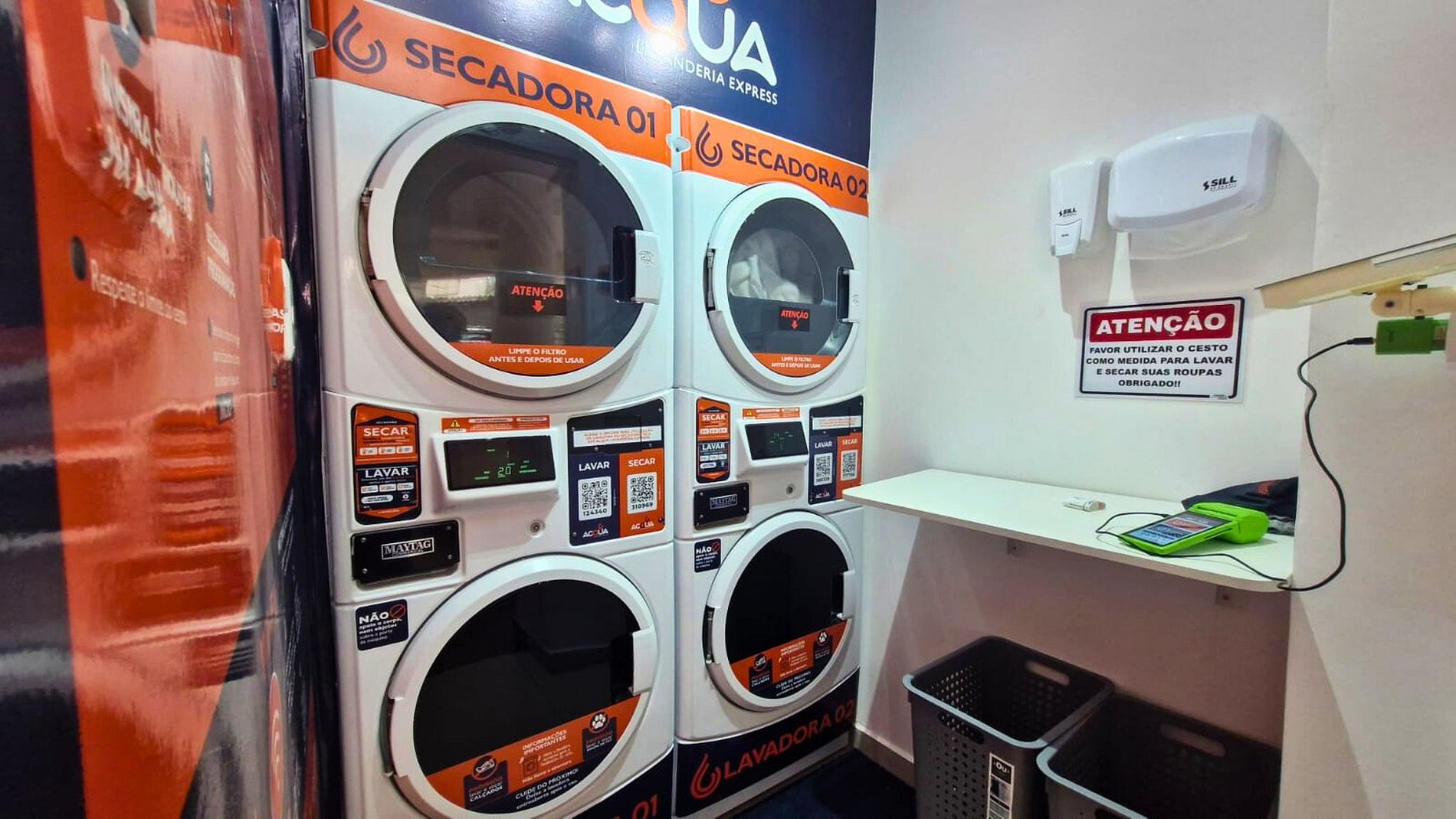 O residencial possui mercadinho 24h e lavanderia compartilhada no térreo