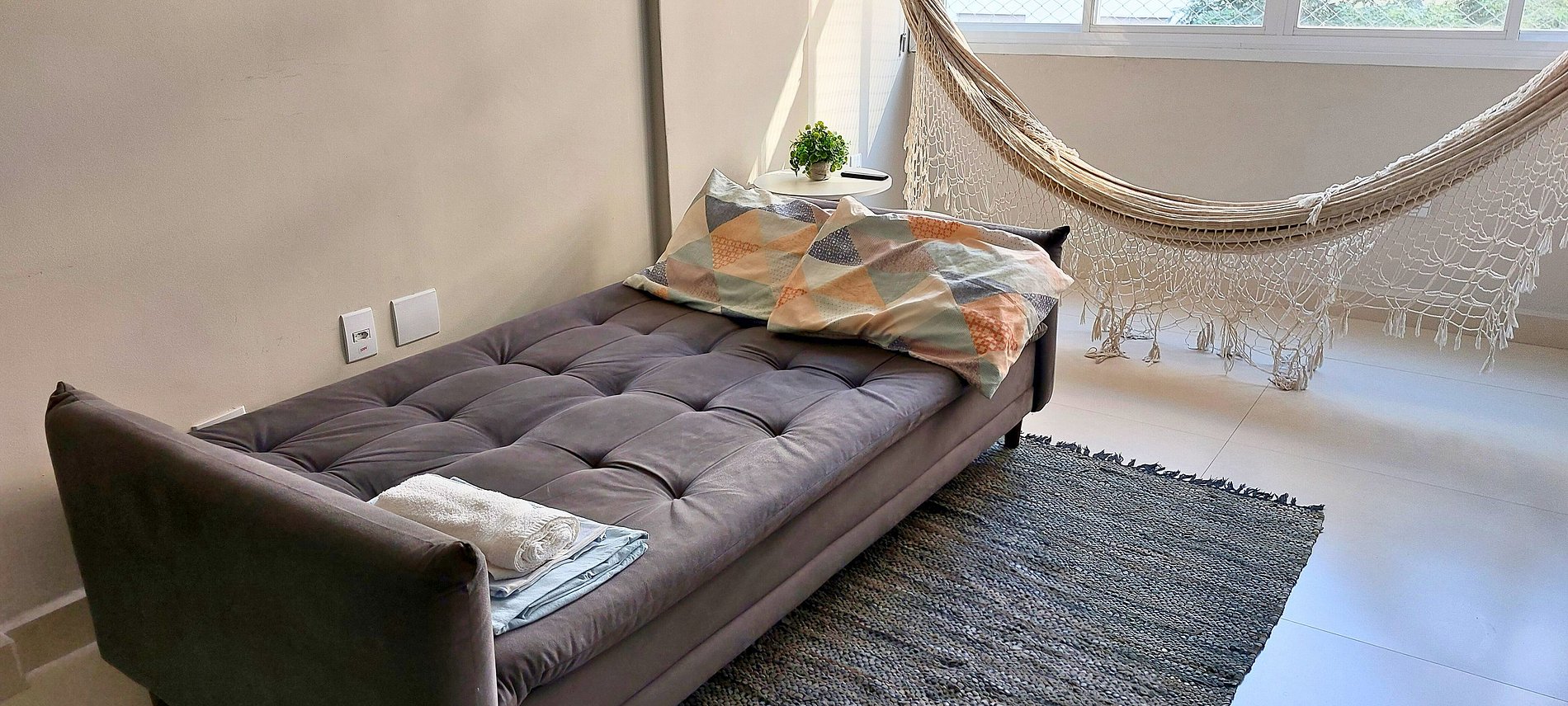 Espaço impecável, limpo, funcional, aconchegante, bem localizado, bem servido de comércio nos arredores, simplesmente tudo perfeito. Vou sempre a Santos, e está foi a melhor acomodação que já fiquei!!
