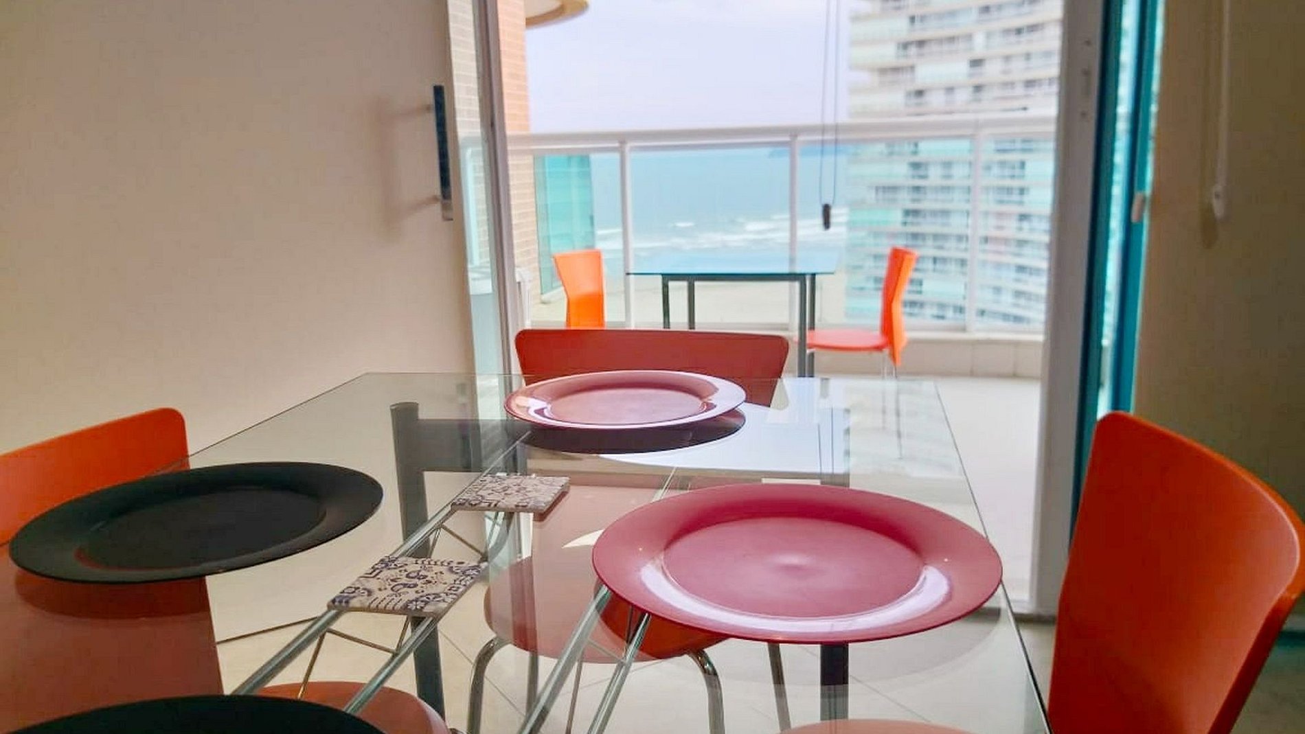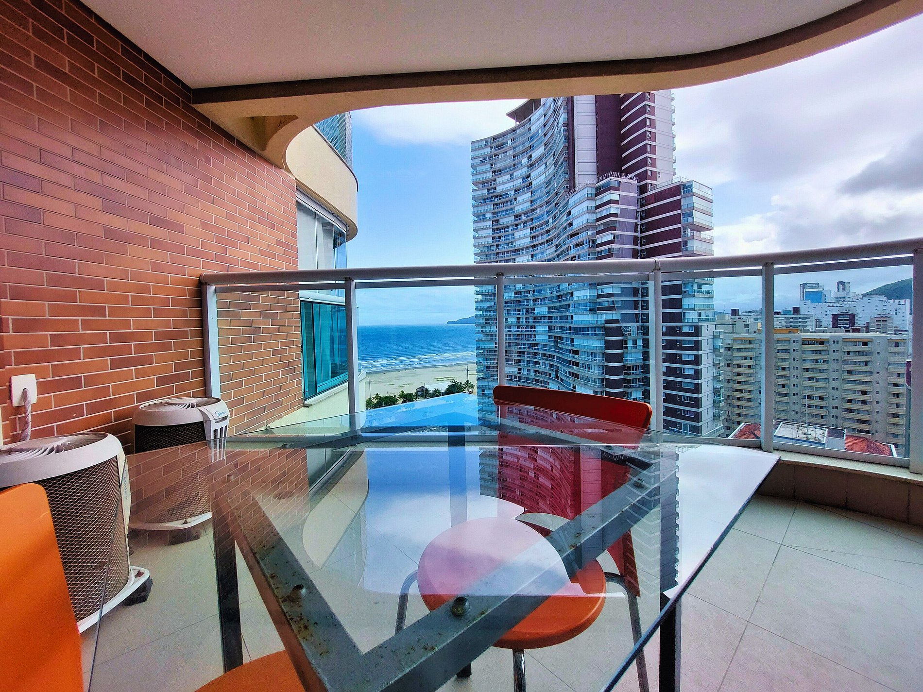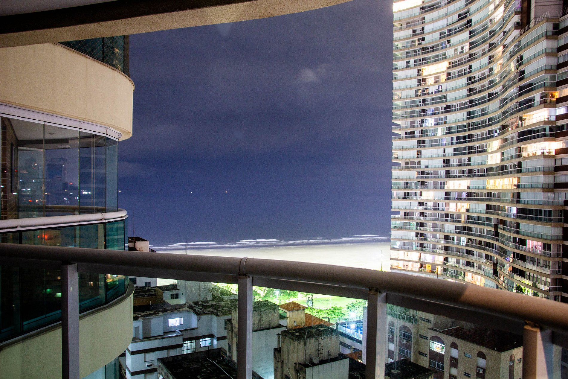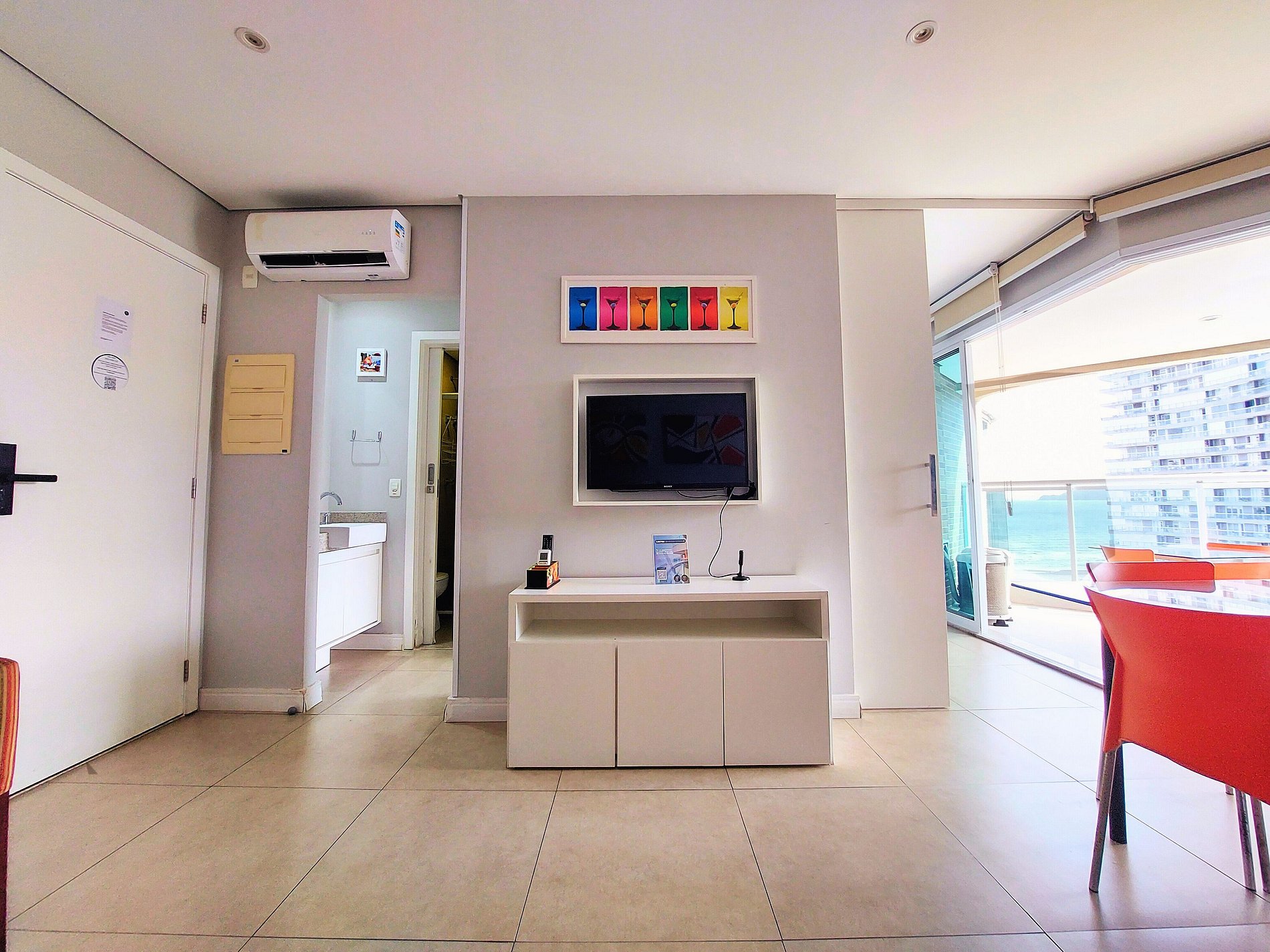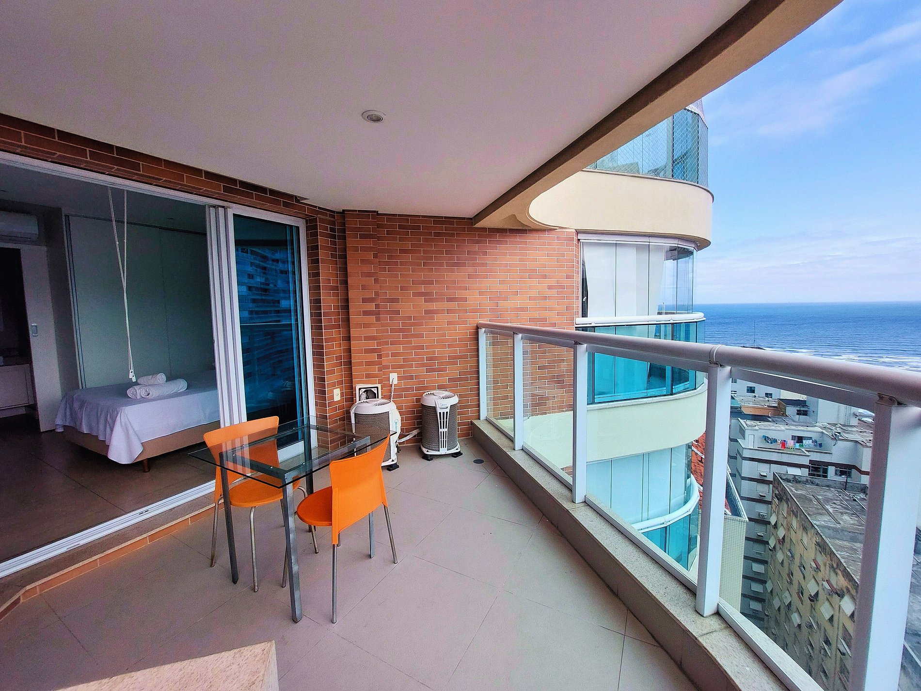 O apto tem uma ótima circulação, não fica apertado. Varanda grande com uma vista linda p o mar e para a cidade.