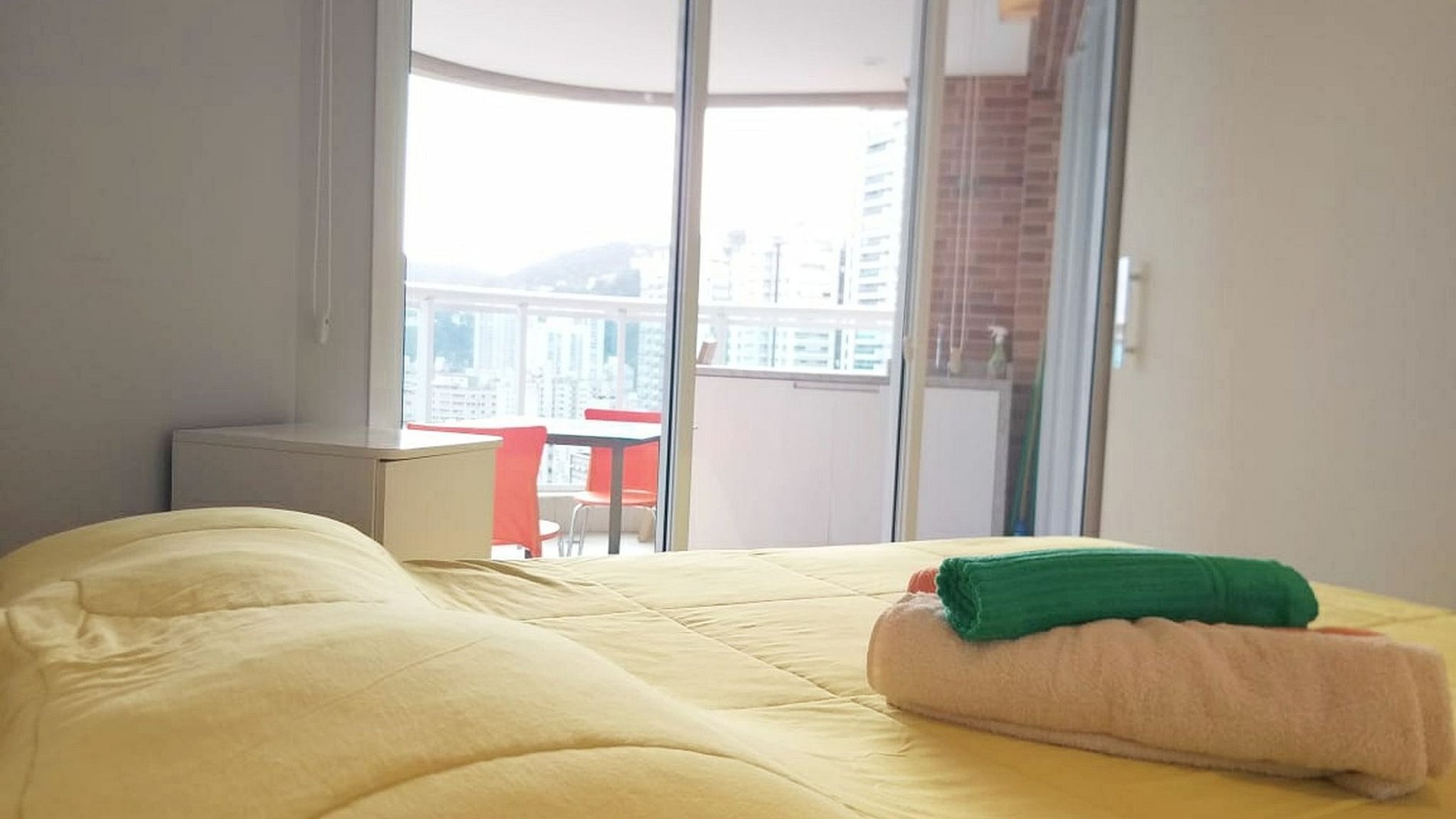 Apto muito bom. Comportou super bem 3 adultos, 1 Criança e 1 cachorrinho. O apto tem uma ótima circulação, não fica apertado. Varanda grande com uma vista linda p o mar e para a cidade. Excelente localização. Tudo perto. Fora a vista linda!!!! A única recomendação seria trocar o colchão da cama de casal. Da p sentir as molas com as mãos. Porém isso não atrapalhou o meu sono. Vi q trocaram o sofá, excelente escolha! Já recomendei p amigos e pretendo voltar.