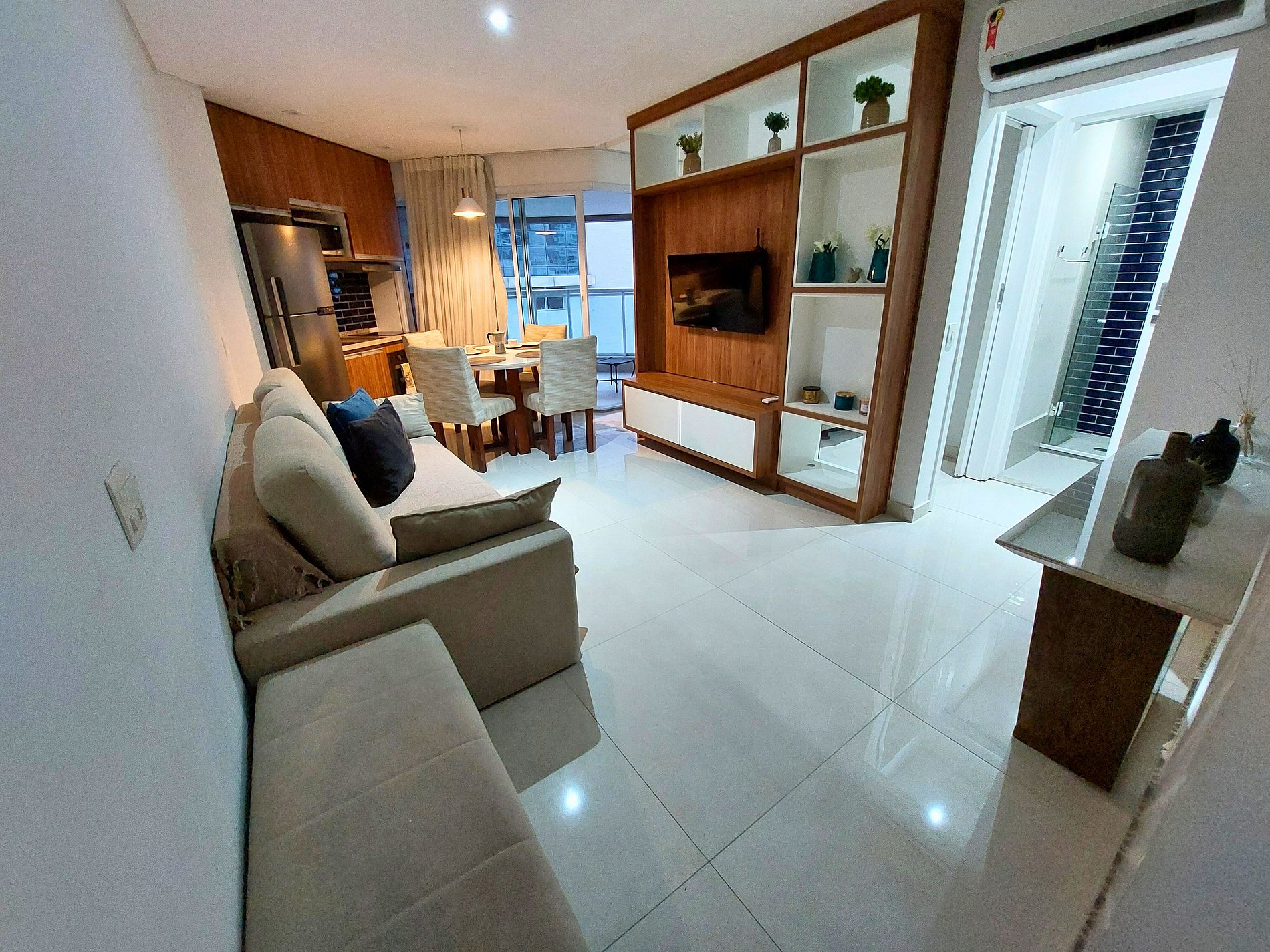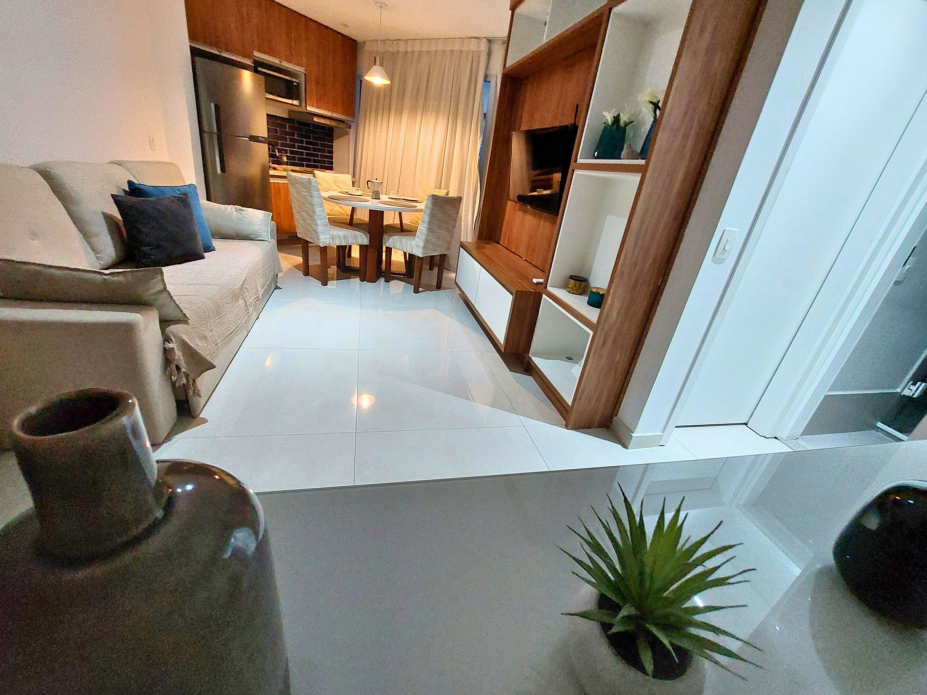 O apartamento é muito bem estruturado e lindo, dá vontade de morar lá. A vista é encantadora, o chuveiro do banheiro é divino, na cozinha tem todos os utensílios necessários, o isolamento acústico é muito bom, tem bastante silêncio. Os funcionários do condomínio super educados e solícitos, o café da manhã é ótimo. Bem pertinho da praia. Nossa shih tzu se sentiu em casa. Voltaremos com certeza!