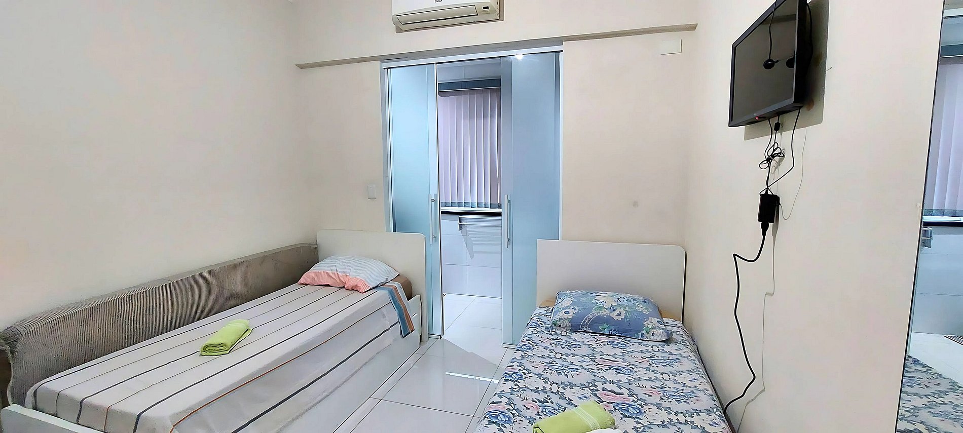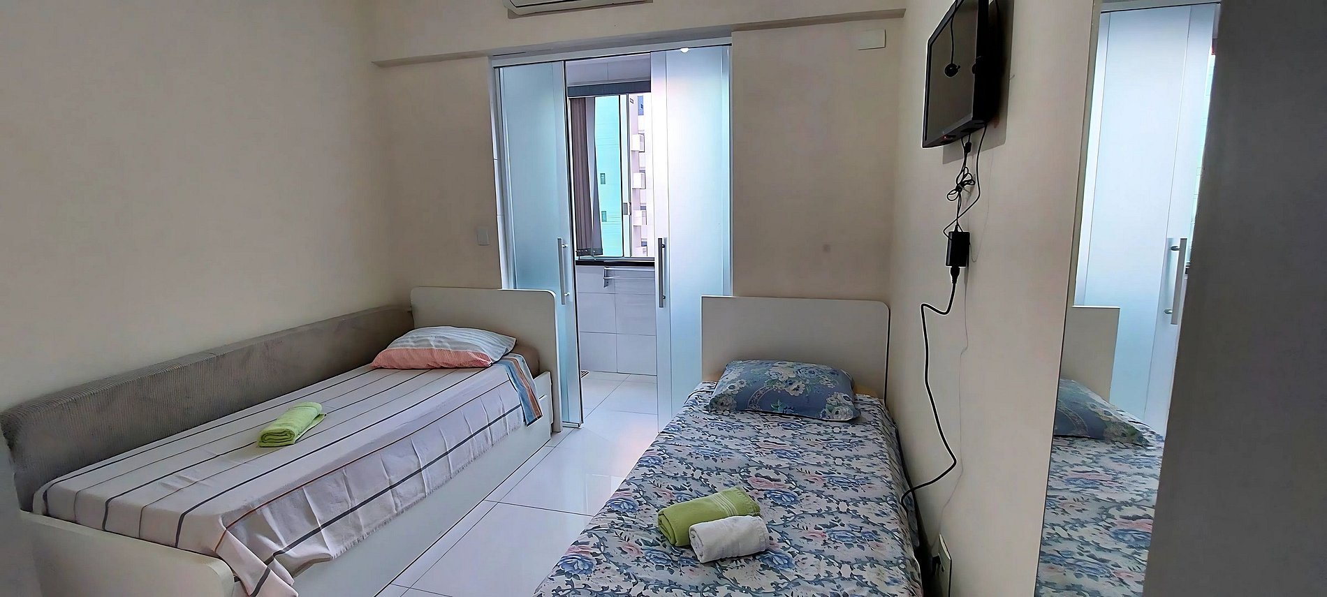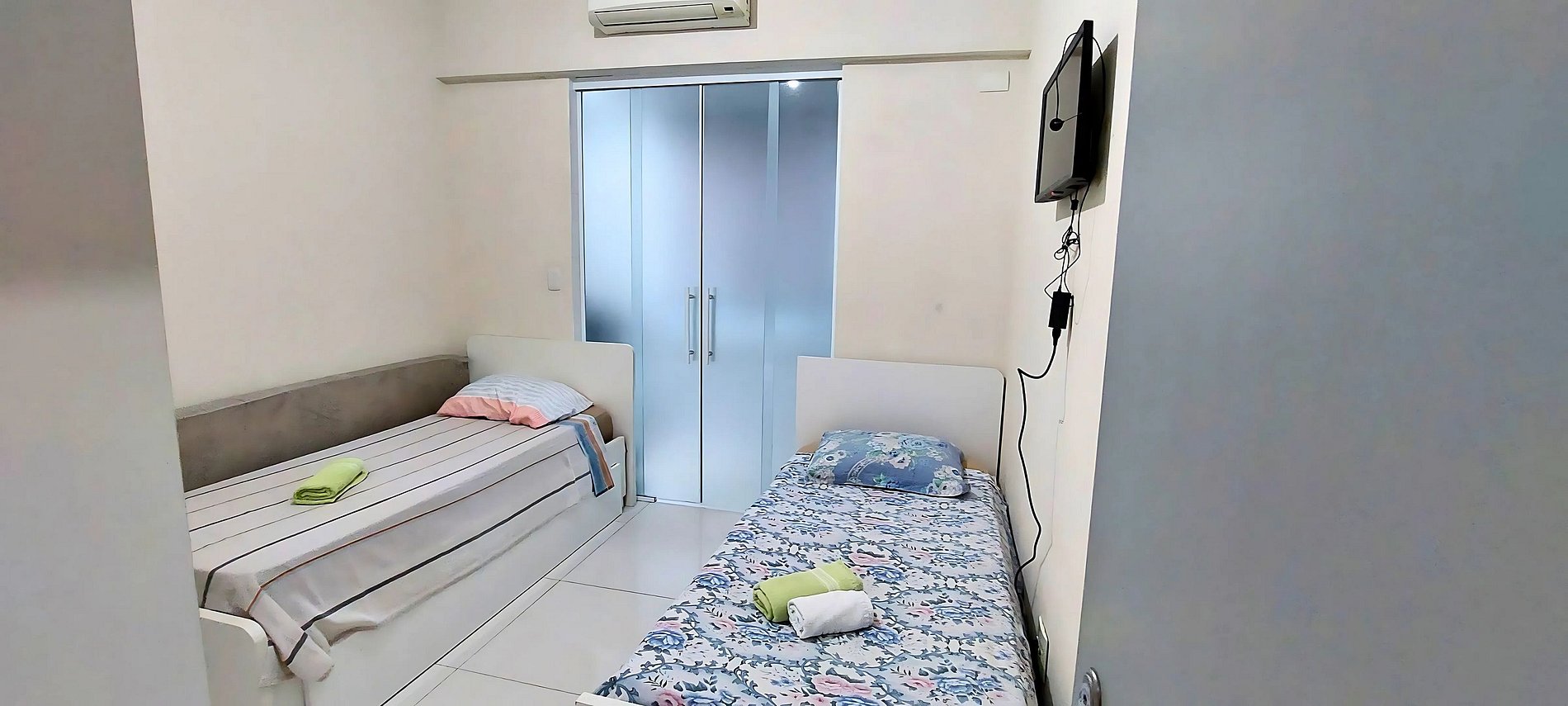Apartamento bem espaçoso e muito boa distribuição. Chuveiro e ducha higiênica no quarto com as camas de solteiro estavam vazando. Os outros pontos atende perfeitamente