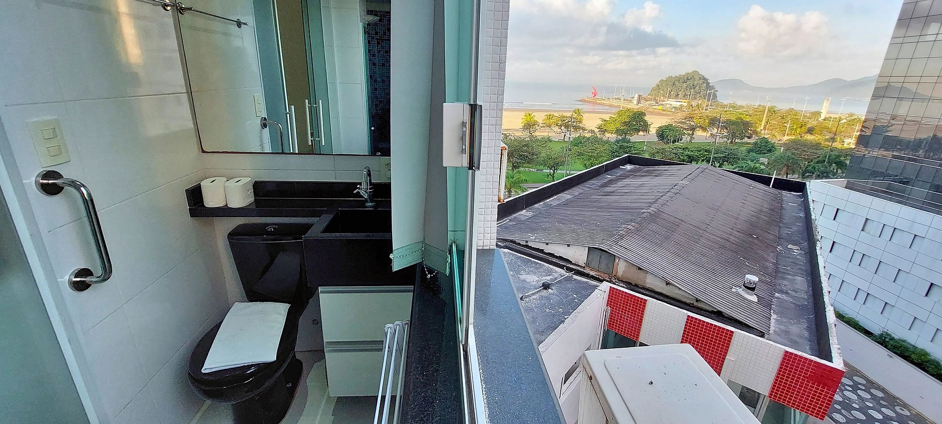 Apartamento 604 com 80m² com DUAS SUITES com ar-condicionado, no Universo Palace, um dos edifícios mais emblemáticos da cidade no bairro José Menino. Vista para o Emissário Submarino e Ilha Urubuqueçaba, cenário único para sua estadia. Um refúgio confortável com experiência residencial excepcional.