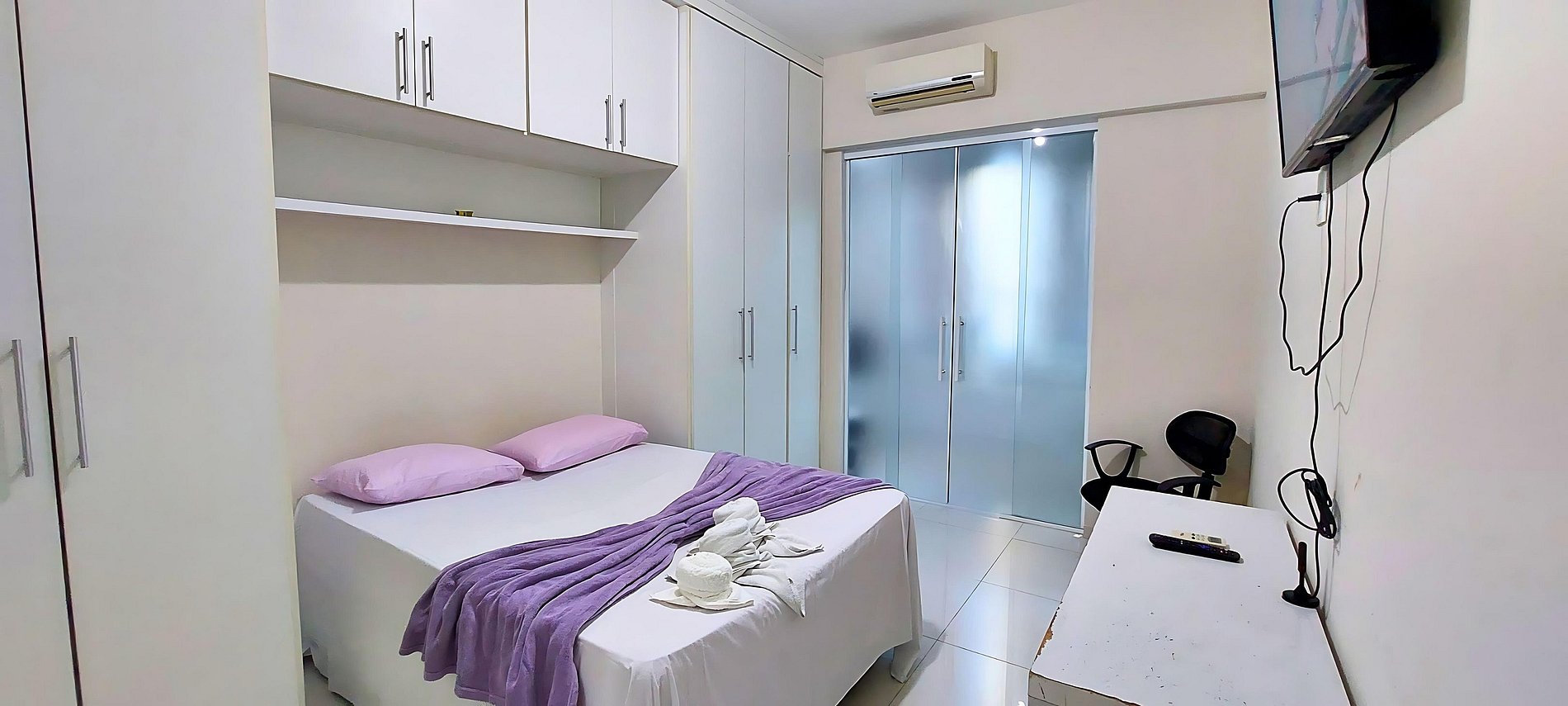 Além disso, o edifício dispõe de elevadores para maior comodidade, uma portaria ativa 24 horas por dia para garantir sua segurança, e conveniente estacionamento ao lado do prédio, disponível por apenas R$ 30,00 por estadia (pago no momento do check-in em PIX ou no dinheiro - não aceitam cartão).