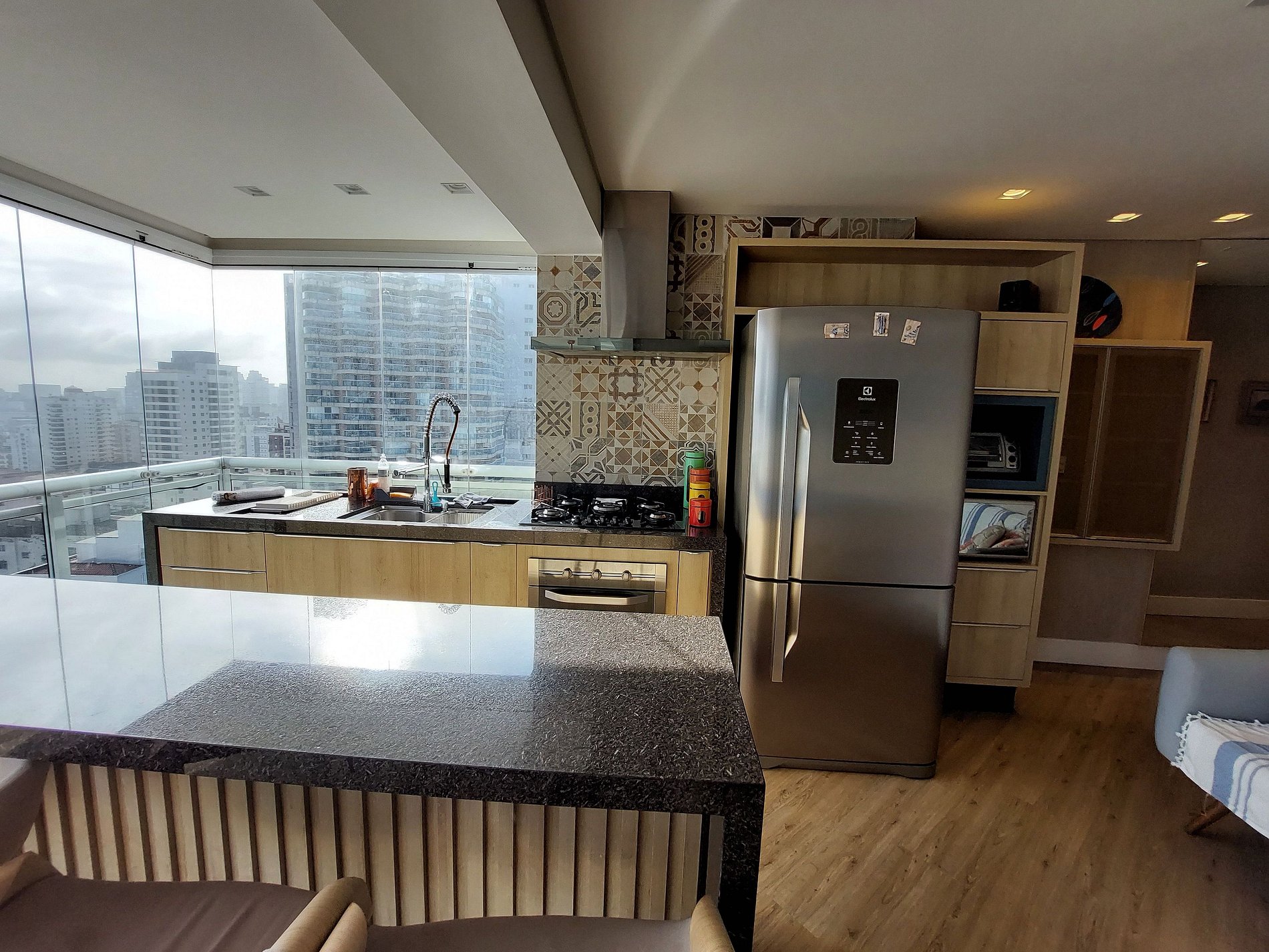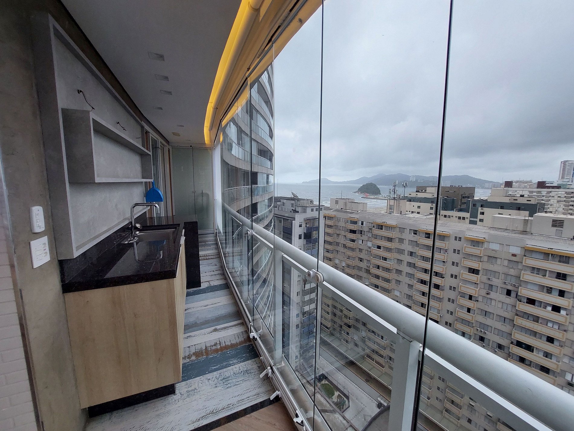 Deslumbrante talvez seja a palavra que resume a experiência no apartamento 1608. Com uma vista panorâmica da cidade, é possível avistar o leste, norte e oeste de Santos, por uma sacada toda envidraçada. Ele possuí 3 quartos, sendo uma suíte além de 2 vagas de garagem!